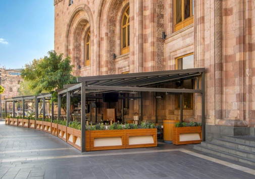 - В ресторане The Square подают блюда западной и армянской кухни, которыми можно насладиться на летней террасе с видом на площадь Республики.