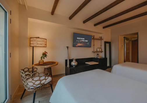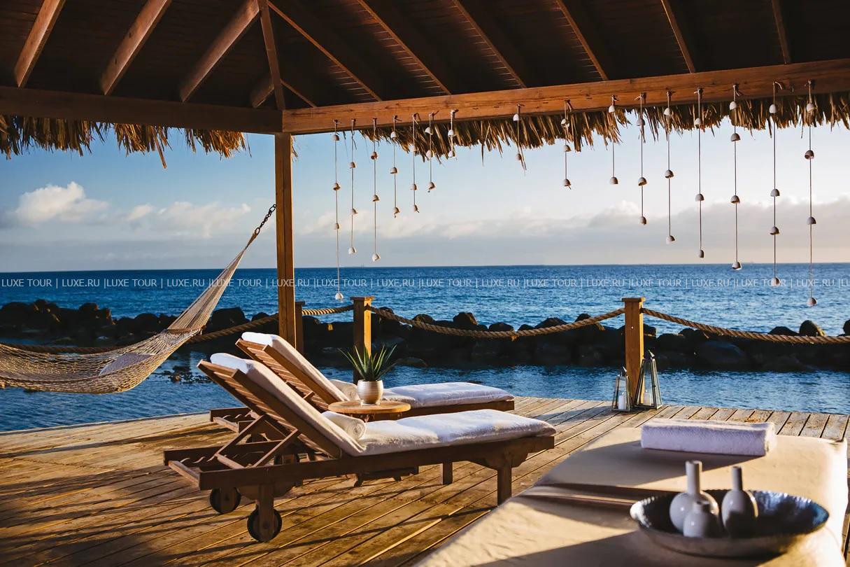 Отель располагает первоклассным центром Okeanos Spa, в котором имеются сауны, кабинет гидротерапии, салон красоты, спа-бутик, зона отдыха с витаминным баром и процедурные кабинеты, а также процедурный павильон Spa Cove с видом на океан, расположенный в укромной бухте на острове Renaissance. Спа-меню включает широкий спектр процедур и программ с использованием косметических средств Pevonia и натуральных карибских продуктов.