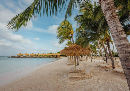 Отель располагает великолепными песчаными пляжами, включая пляж у лагуны, и тремя пляжами на частном необитаемом острове Renaissance, на одном из которых обитают фламинго, и еще один – семейный. На остров гостей доставляет водное такси, также на пляже имеются комфортные павильоны для отдыха.
