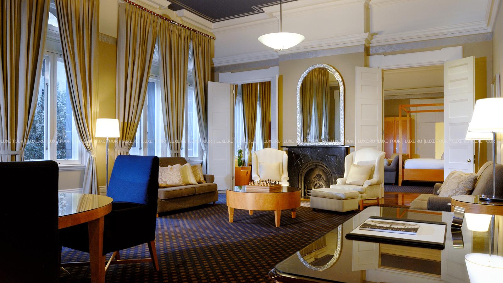 The Fullerton Hotel Sydney, расположенный в центре делового района Сиднея, рядом с бухтой Darling, зданием Оперы, сиднейским мостом, другими достопримечательностями города, состоит из двух частей – современной 31-этажной зеркальной башни и старинного здания бывшего Главпочтамта. В комфортабельных номерах – элегантные интерьеры в классическом стиле, с изящной мебелью, красиво драпированными шторами, изысканными украшениями и цветочными композициями, большими, от пола до потолка окнами, из которых открывается панорамный вид на Сидней.