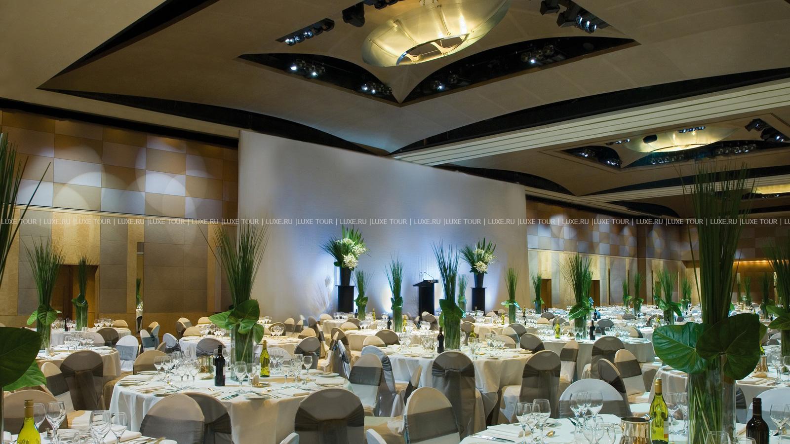 13 современно оснащенных залов для заседаний и банкетов, включая просторный бальный зал, вмещающий до 1200 человек – идеальное место для проведения деловых и торжественных мероприятий. Для гостей – магазин, автомобильная парковка, лимузин-сервис, услуги прачечной и химчистки.