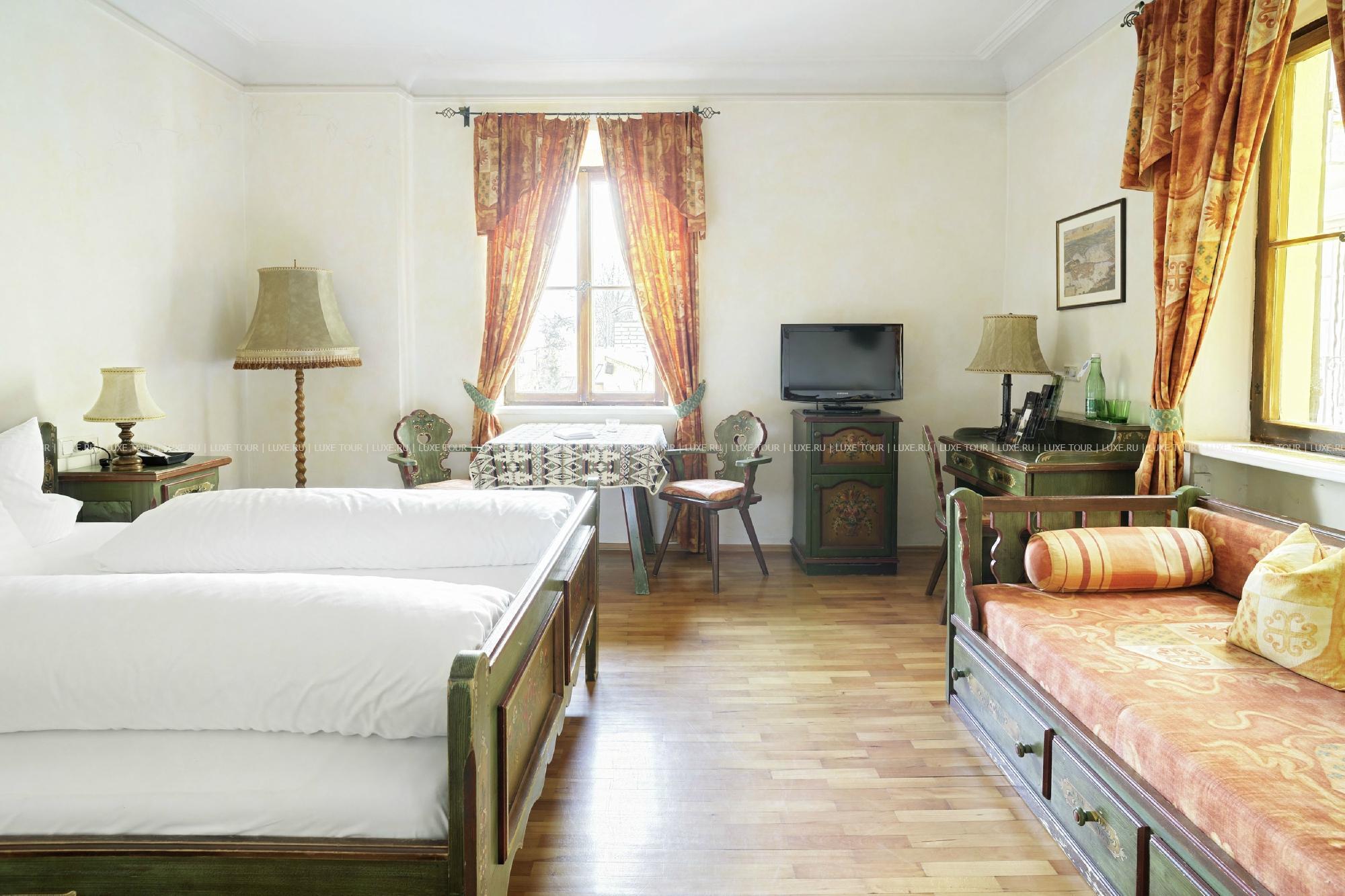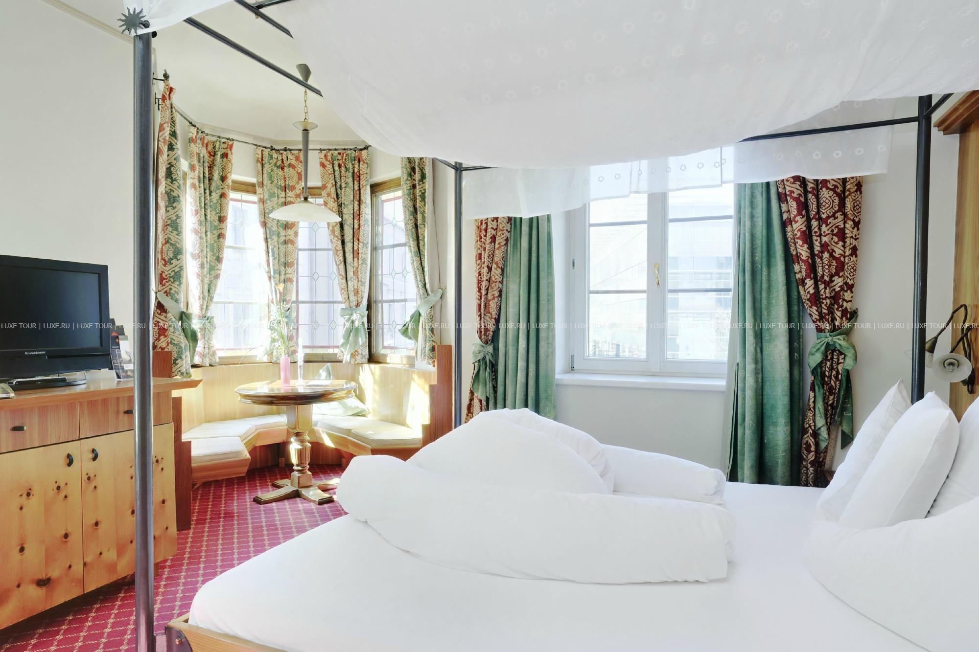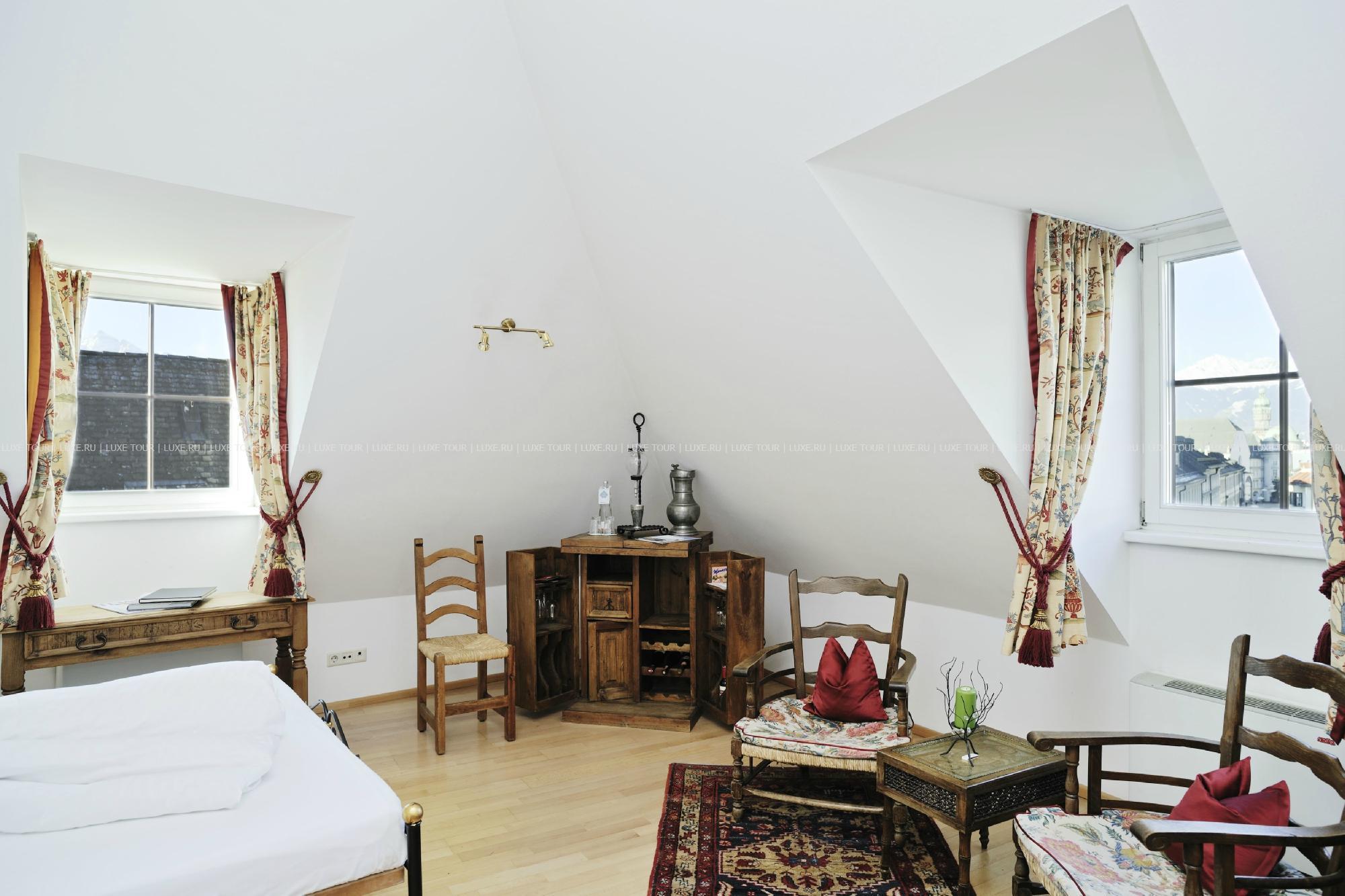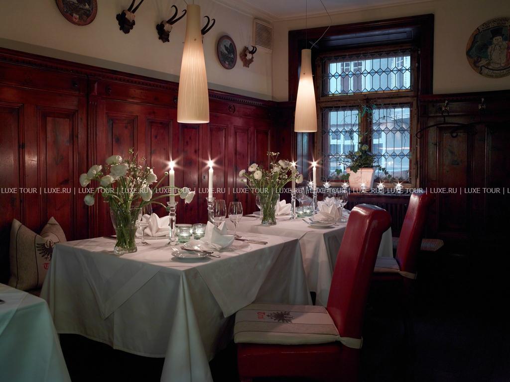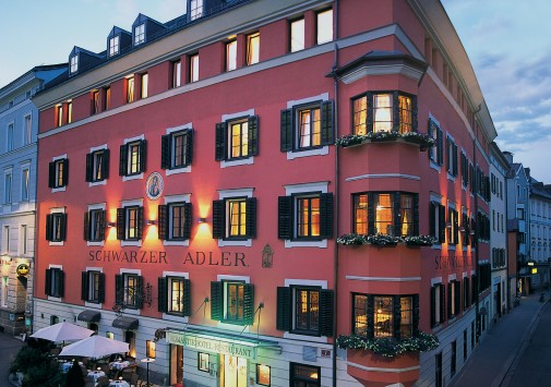 Красивый, с ярким фасадом, старинный особняк Sсhwarzer Adler Innsbruck расположен в историческом центре Инсбрука, на улице Kaiserjäger, рядом выставочным центром, Университетом и парком Hofgarten. Отель, ведущий свою историю с начала 16 века, за годы существования претерпел многие перемены и был в центре разных исторических событий: он принадлежал и императору Максимилиану, и знатному аристократическому семейству, здесь останавливались многие знаменитости, а в начале 20 века Sсhwarzer Adler перешел во владение семьи Ултч (Ultsch), которая бережно хранит вековые традиции и историческую ценность этого памятника средневековья, гармонично сочетая их с самым современным комфортом. В просторных номерах, каждый из которых имеет индивидуальный стиль, — элегантные классические интерьеры, с дорогими коврами на полах, красиво драпированными шторами, изящной мебелью, изысканным декором, включая дизайн от Versace и кристаллы от Swarovski, утонченную живопись и предметы антиквариата. Отель располагает Оздоровительным/спа-центром, все помещения которого украшены кристаллами. Также работает центр красоты, предлагающий большой выбор различных видов массажа и косметологических процедур с использованием натуральной косметики. В ресторане Romantic, имеющим такую же богатую историю, как и сам отель, можно отведать деликатесы и фирменные блюда современной тирольской и австрийской кухонь, включая инновационные блюда «здорового» меню, предлагаемые шеф-поваром. В хорошую погоду столики сервируются на открытой террасе с панорамным видом, расположенной на крыше, здесь проходят различные развлекательные и музыкальные программы. В ресторане, находящемся в старинном погребе со сводчатыми потолками, подаются завтраки, а элегантный Piff-Bar - приятное место для отдыха и встреч. К услугам гостей — 7 залов для заседаний и банкетов, бизнес-оснащение, гараж, лимузин-сервис. Sсhwarzer Adler позволяет окунуться в удивительную атмосферу далекой средневековой истории, гармонично дополненную комфортом 21 века и радушным тирольским гостеприимством.