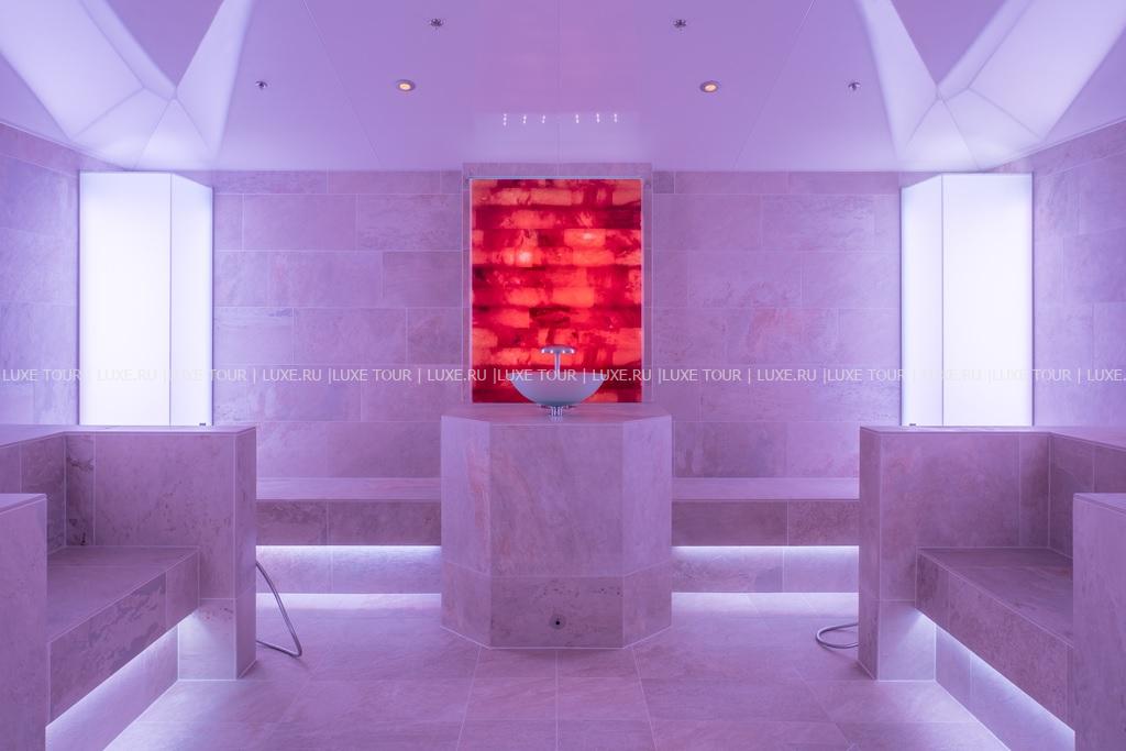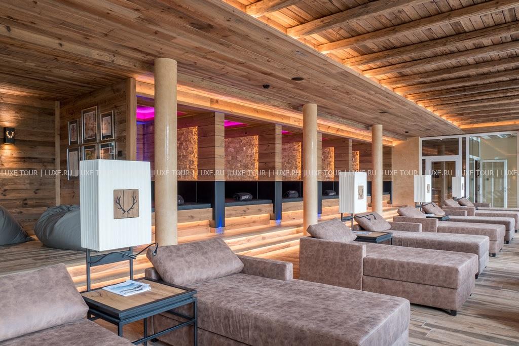 Отель располагает первоклассным комплексом Alpine Active Spa площадью 4700 м2, где имеется: открытые и крытый бассейны с подогревом и видом на горы, природное озеро, открытая и крытая гидромассажные ванны, зона саун (тирольская сауна с панорамным видом на горы, травяная парная, лакониум, инфракрасная сауна, соляной грот, ванны Кнайппа, различные виды душа), открытые и крытые зоны отдыха с подогреваемыми и водяными кроватями, процедурные кабинеты с видом на горы и шале Private Spa с сауной, парной, гидромассажной ванной, процедурной зоной и зоной отдыха с террасой и панорамным видом на горы. В центре предлагается широкий спектр процедур и программ различной направленности и длительности – от велнеса, детокса и релаксации до ароматерапии, гидротерапии и процедур с использованием альпийских трав, эксклюзивной косметики St Barth и Augustinus Bader.