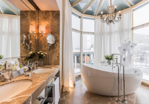 На территории отеля находятся: открытый 20-метровый плавательный бассейн с подогревом, подогреваемый панорамный бассейн с открытой и крытой зонами, оборудованное для купания природное озеро, открытая гидромассажная ванна, гидромассажная ванна с морской водой в саду.