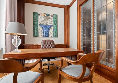 • В зале Living Room гости могут расслабиться и выкурить сигару, заказать ликер и попробовать вкуснейшую венскую выпечку.