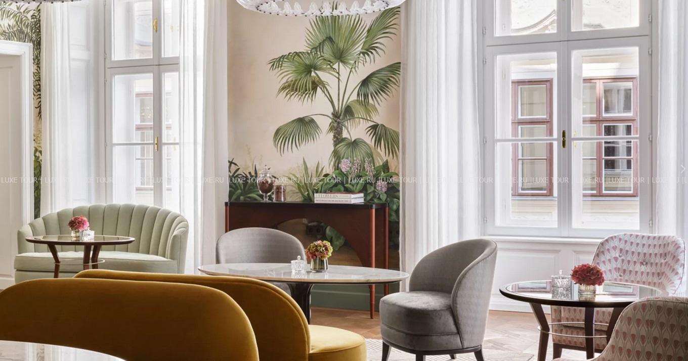 • В уютном лаундже Salon Aurelie, украшенном росписями с изображением экзотических растений, подают кофе, чай, шампанское и восхитительные венские десерты.