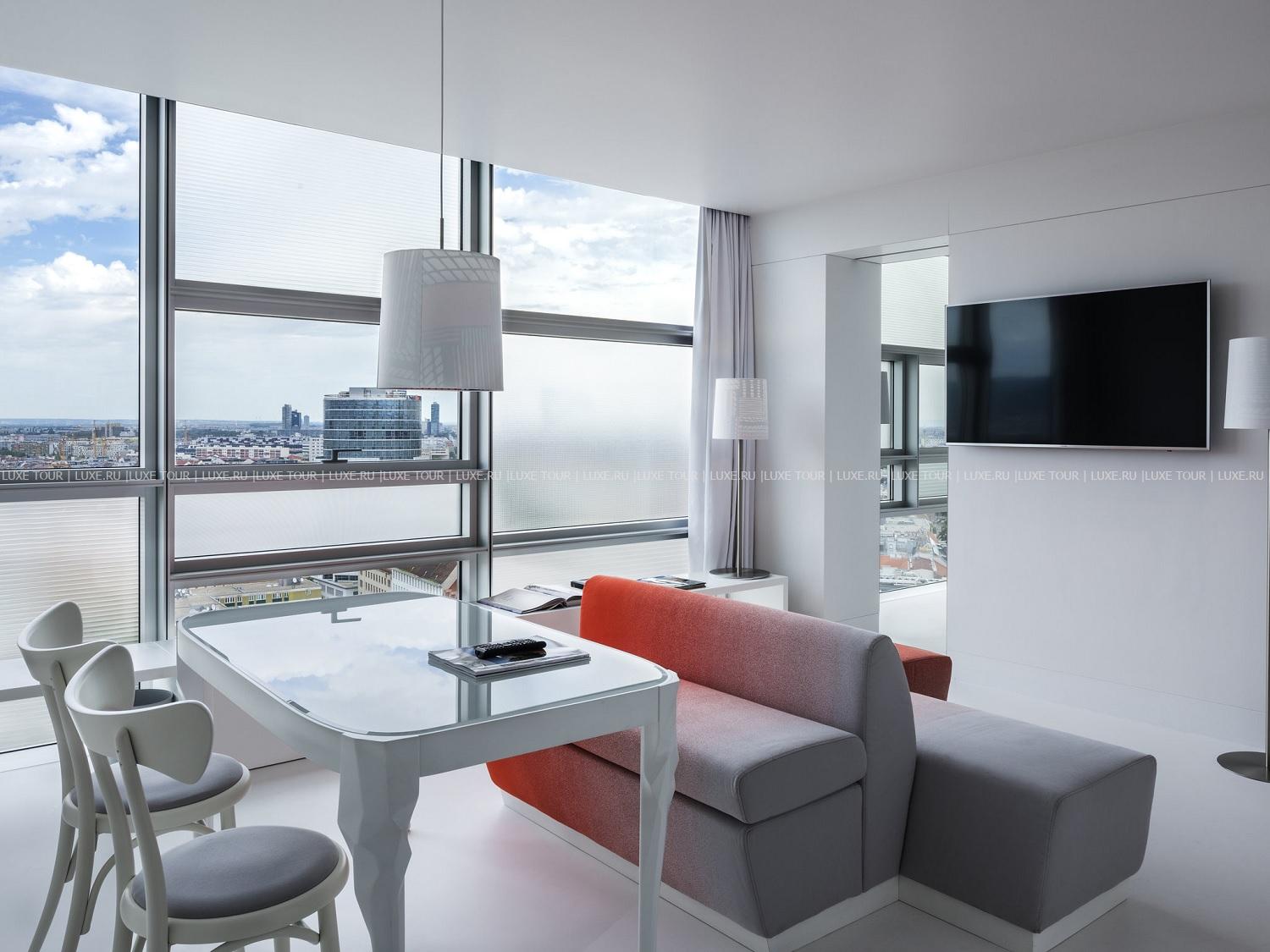 В историческом центре Вены, рядом с собором Святого Стефана, Старым городом, парком Пратер и другими знаменитыми достопримечательностями австрийской столицы возвышается ультрасовременная башня SO/Vienna. Проект отеля создавали всемирно известные мастера – французский архитектор Жан Нувель и швейцарская художница в жанре видео-арта Пипилотти Рист. Результат их искусства впечатляет: оригинальная архитектура здания с фасадом, сверкающим стеклами окон, стильный интерьер с калейдоскопом зеркал и потолками-мониторами, которые завораживают фантастическими мультимедийными представлениями, вдохновленными яркими красками флоры и фауны. Необычные дизайнерские решения и потрясающий вид на город гостей отеля ждут повсюду – от просторных комфортабельных номеров, Spa и фитнес-центров до вместительных конференц-залов, элегантных баров и панорамного ресторана Das Loft, откуда можно любоваться венскими пейзажами с высоты птичьего полета. SO/Vienna – островок авангардного искусства в сердце старинной Вены.