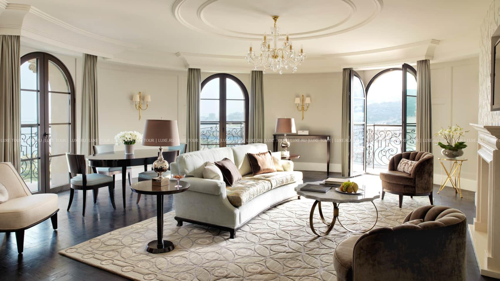 Для гостей – 8 залов для деловых и торжественных мероприятий общей площадью 1865 м2, включая зал для торжеств площадью 640 м2, бизнес-центр, бесплатный Wi-Fi, парковка, вертолетная площадка, аренда машин, лимузин-сервис, услуги консьержа, услуги прачечной и химчистки.