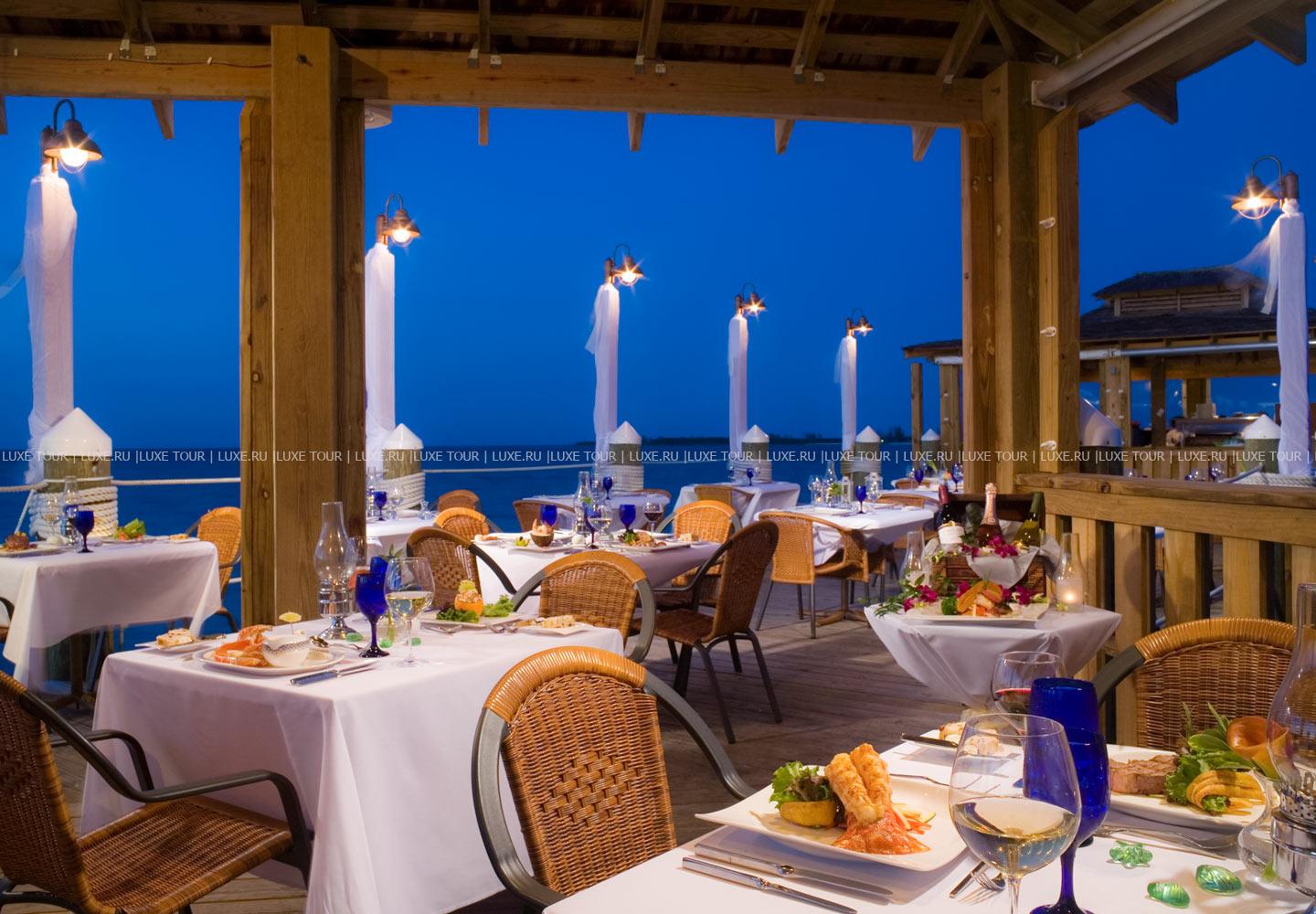 Кафе Goombay с открытой террасой, расположенной в нескольких шагах от океана, представляет традиционную еду Багамских островов.