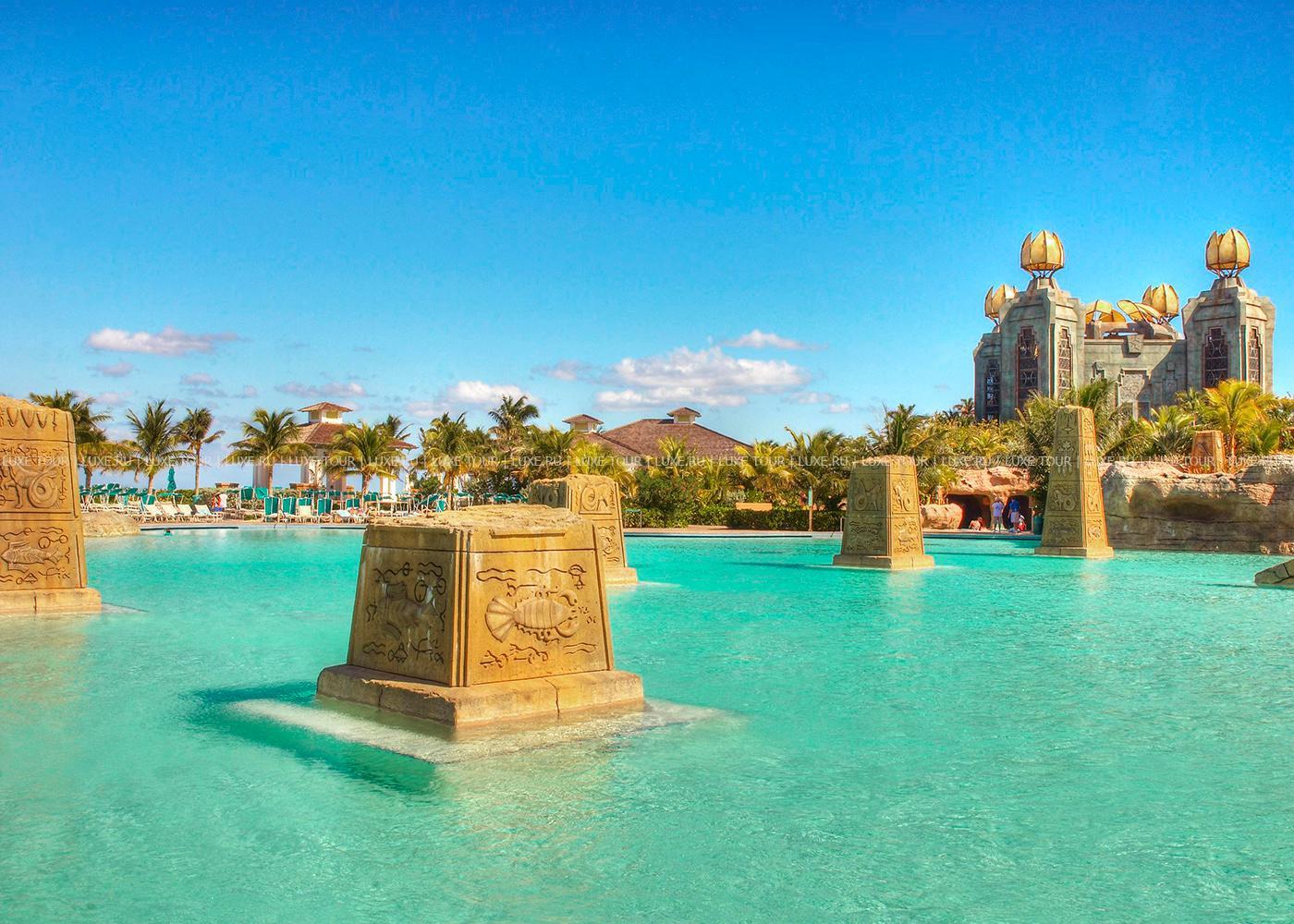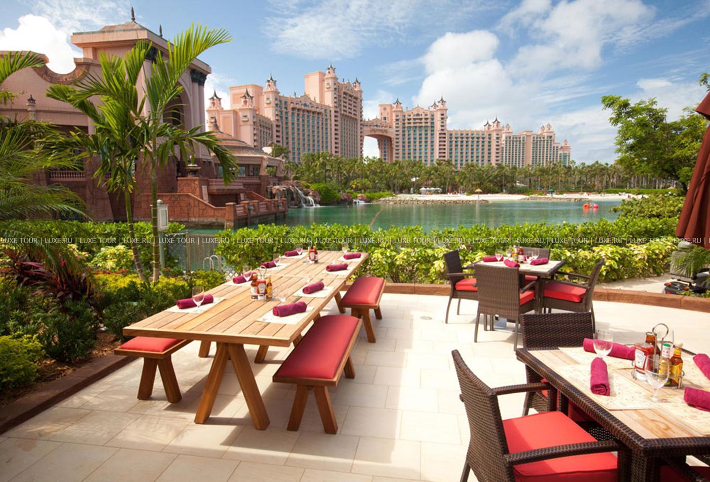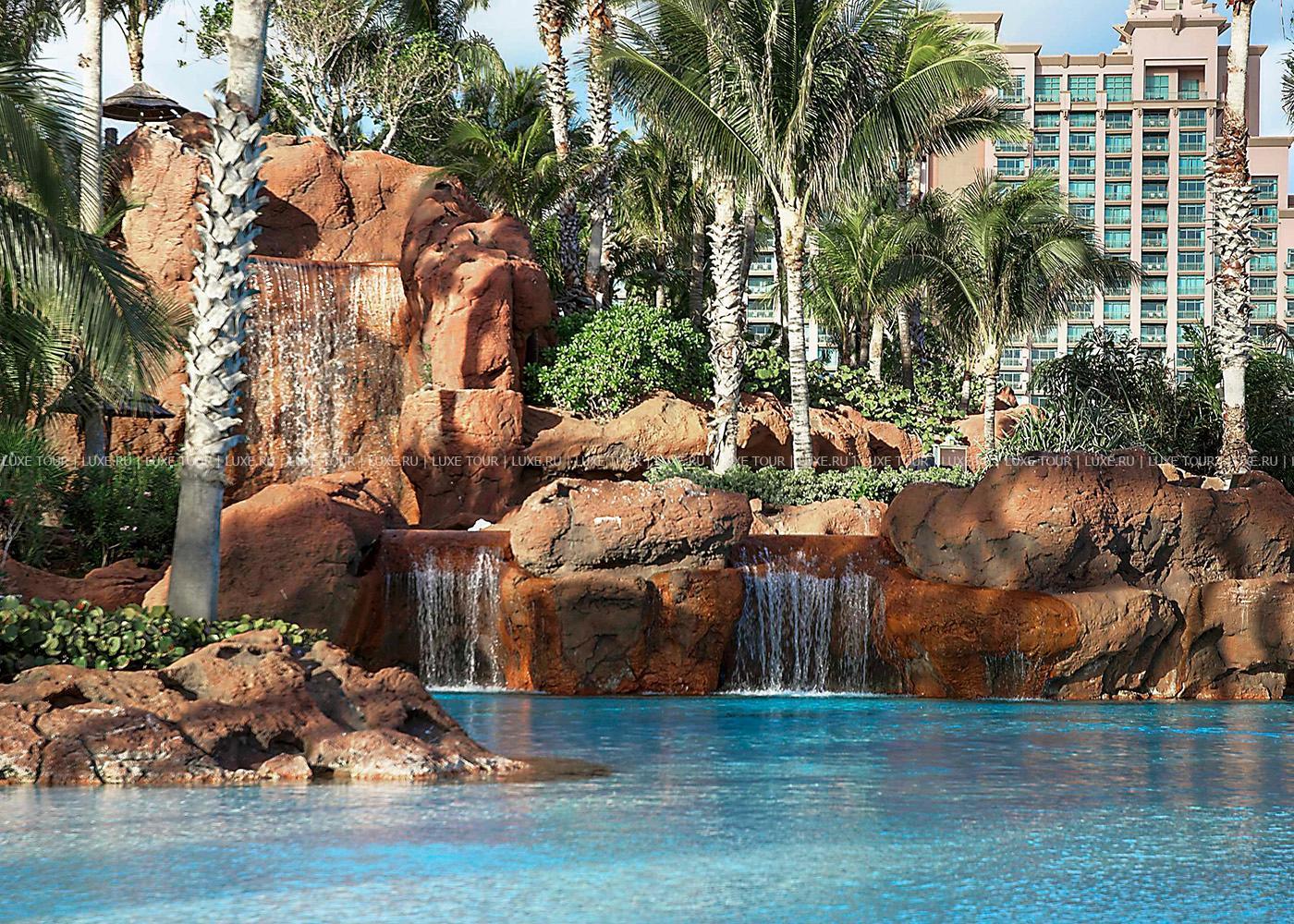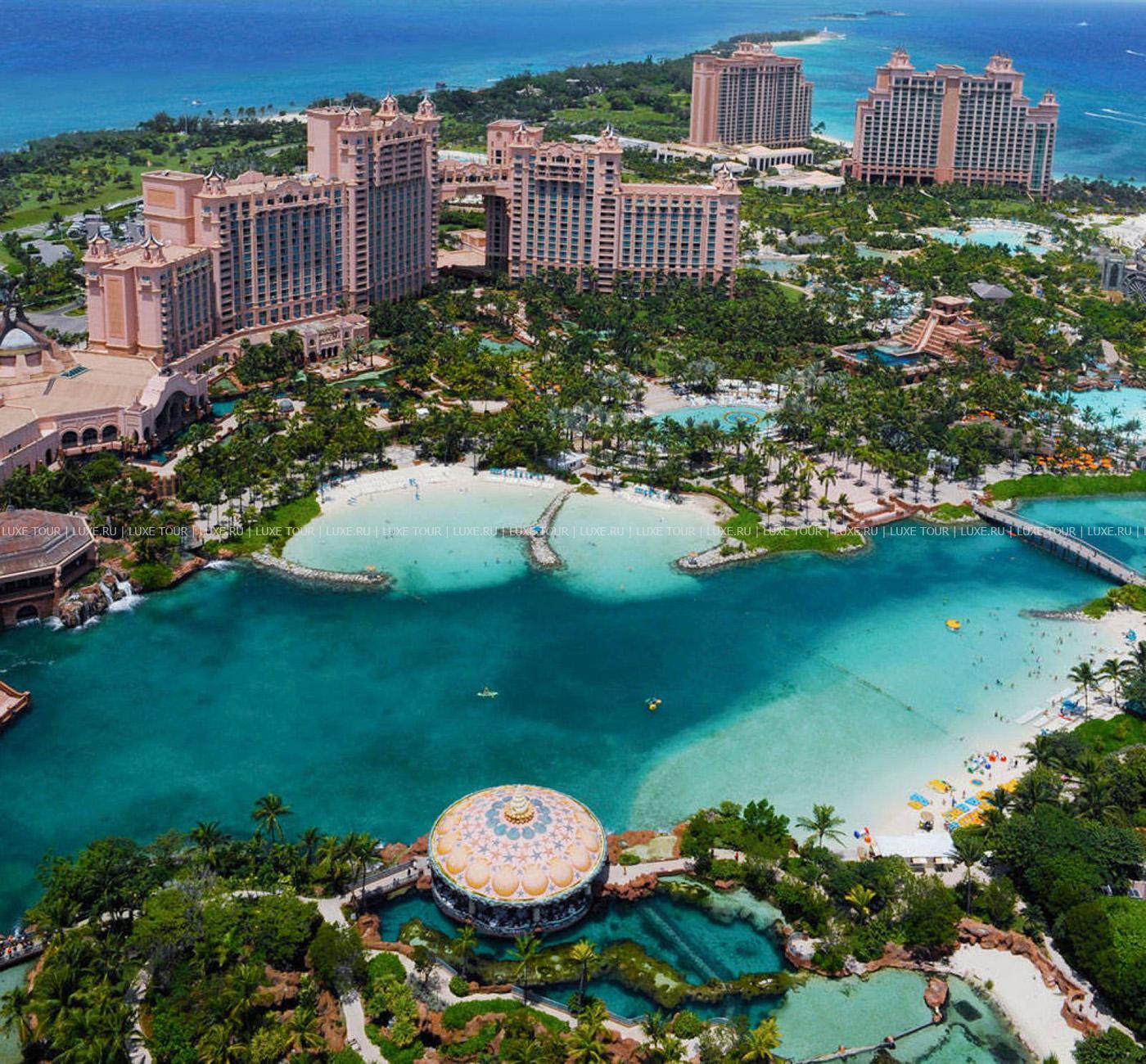 Для гостей проводятся разнообразные развлекательные программы (в том числе, – шоу Joker Wild Comedy Club), устраиваются экскурсии и развлечения (плавание с дельфинами, морские круизы на яхте, исторические туры в Нассау), есть собственный кинотеатр, ультрасовременное казино со скульптурами из стекла, выполненными мастером Dale Chihuly (100 столов, 1000 слот-машин) с ночным клубом Dragons, огромный аквариум-лагуна Marina Village, где находятся более 50000 видов тропических морских обитателей, представляющих более 200 разновидностей морской фауны (включая 11 лагун с пираньями, черепахами, скатами и хищниками). Комплекс располагает одним из самых больших в мире водных парков — Aquaventure, площадью 57 гектаров со множеством бассейнов, водопадов, туннелей и водных аттракционов, в том числе, — стремительное водное путешествие по волнам с головокружительными эффектами.