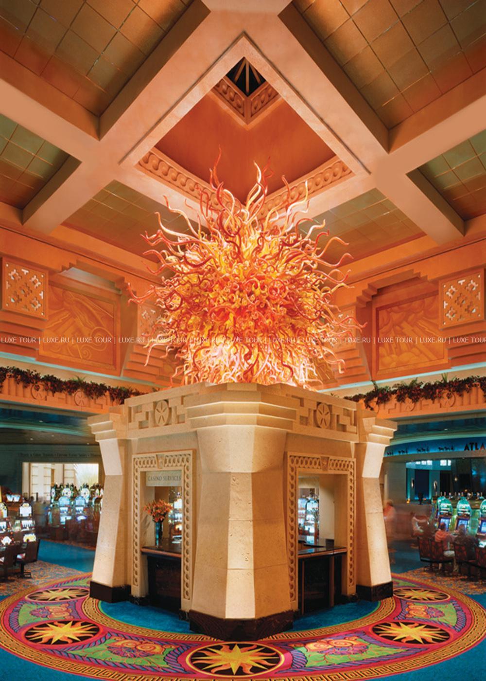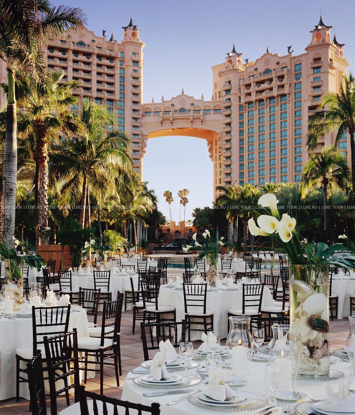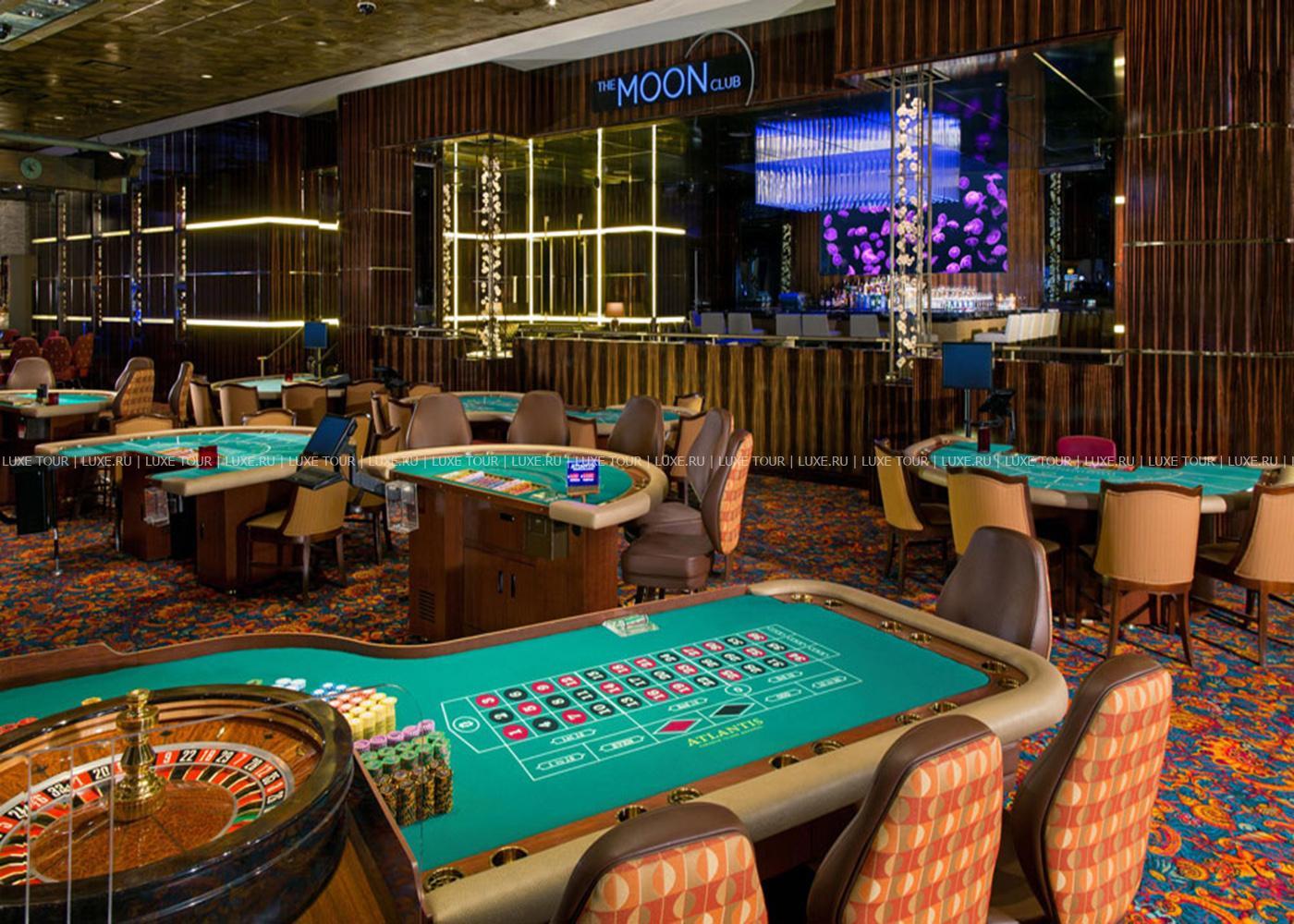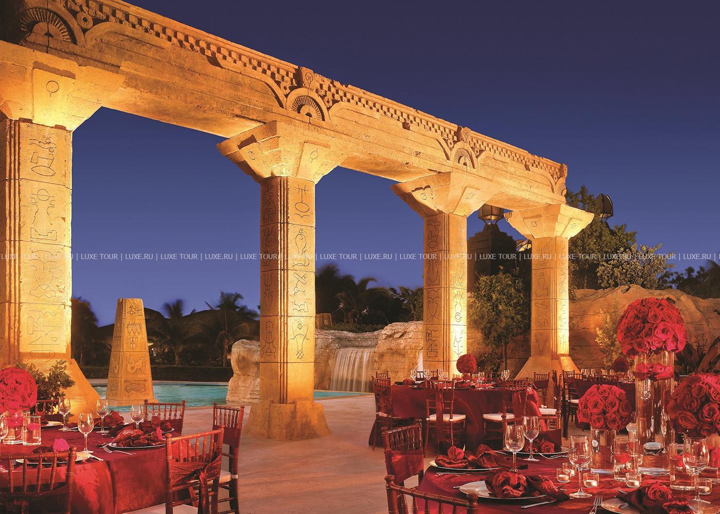 Для гостей проводятся разнообразные развлекательные программы (в том числе, – шоу Joker Wild Comedy Club), устраиваются экскурсии и развлечения (плавание с дельфинами, морские круизы на яхте, исторические туры в Нассау), есть собственный кинотеатр, ультрасовременное казино со скульптурами из стекла, выполненными мастером Dale Chihuly (100 столов, 1000 слот-машин) с ночным клубом Dragons, огромный аквариум-лагуна Marina Village, где находятся более 50000 видов тропических морских обитателей, представляющих более 200 разновидностей морской фауны (включая 11 лагун с пираньями, черепахами, скатами и хищниками). Комплекс располагает одним из самых больших в мире водных парков — Aquaventure, площадью 57 гектаров со множеством бассейнов, водопадов, туннелей и водных аттракционов, в том числе, — стремительное водное путешествие по волнам с головокружительными эффектами.