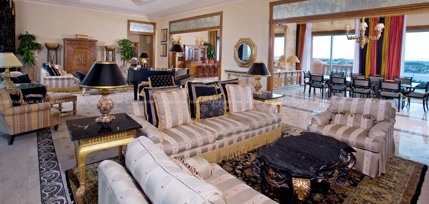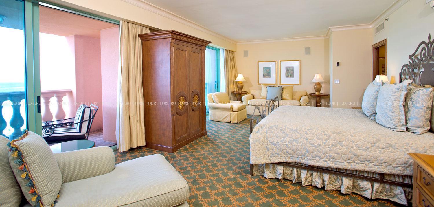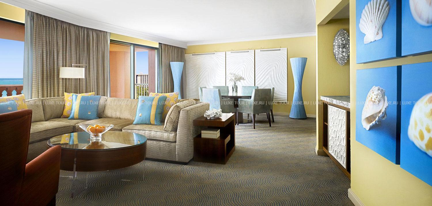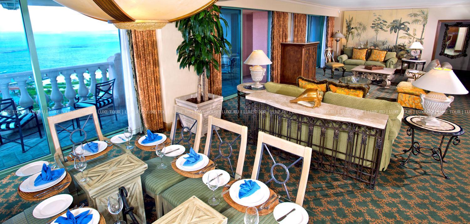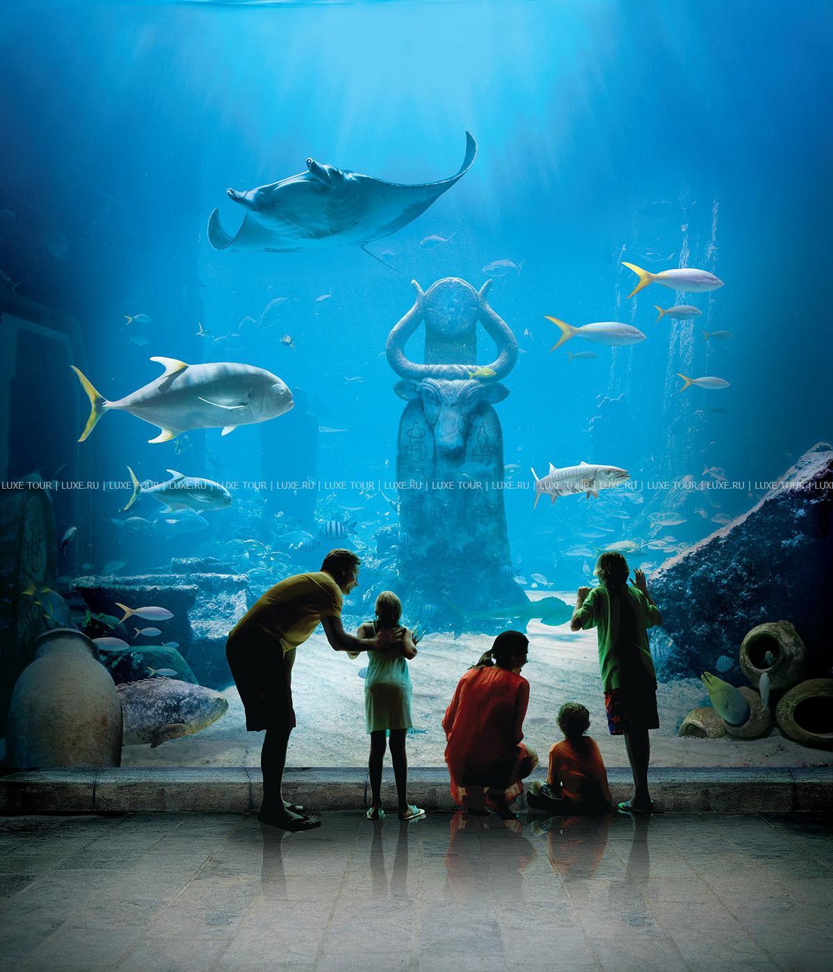 Для гостей проводятся разнообразные развлекательные программы (в том числе, – шоу Joker Wild Comedy Club), устраиваются экскурсии и развлечения (плавание с дельфинами, морские круизы на яхте, исторические туры в Нассау), есть собственный кинотеатр, ультрасовременное казино со скульптурами из стекла, выполненными мастером Dale Chihuly (100 столов, 1000 слот-машин) с ночным клубом Dragons, огромный аквариум-лагуна Marina Village, где находятся более 50000 видов тропических морских обитателей, представляющих более 200 разновидностей морской фауны (включая 11 лагун с пираньями, черепахами, скатами и хищниками). Комплекс располагает одним из самых больших в мире водных парков — Aquaventure, площадью 57 гектаров со множеством бассейнов, водопадов, туннелей и водных аттракционов, в том числе, — стремительное водное путешествие по волнам с головокружительными эффектами.