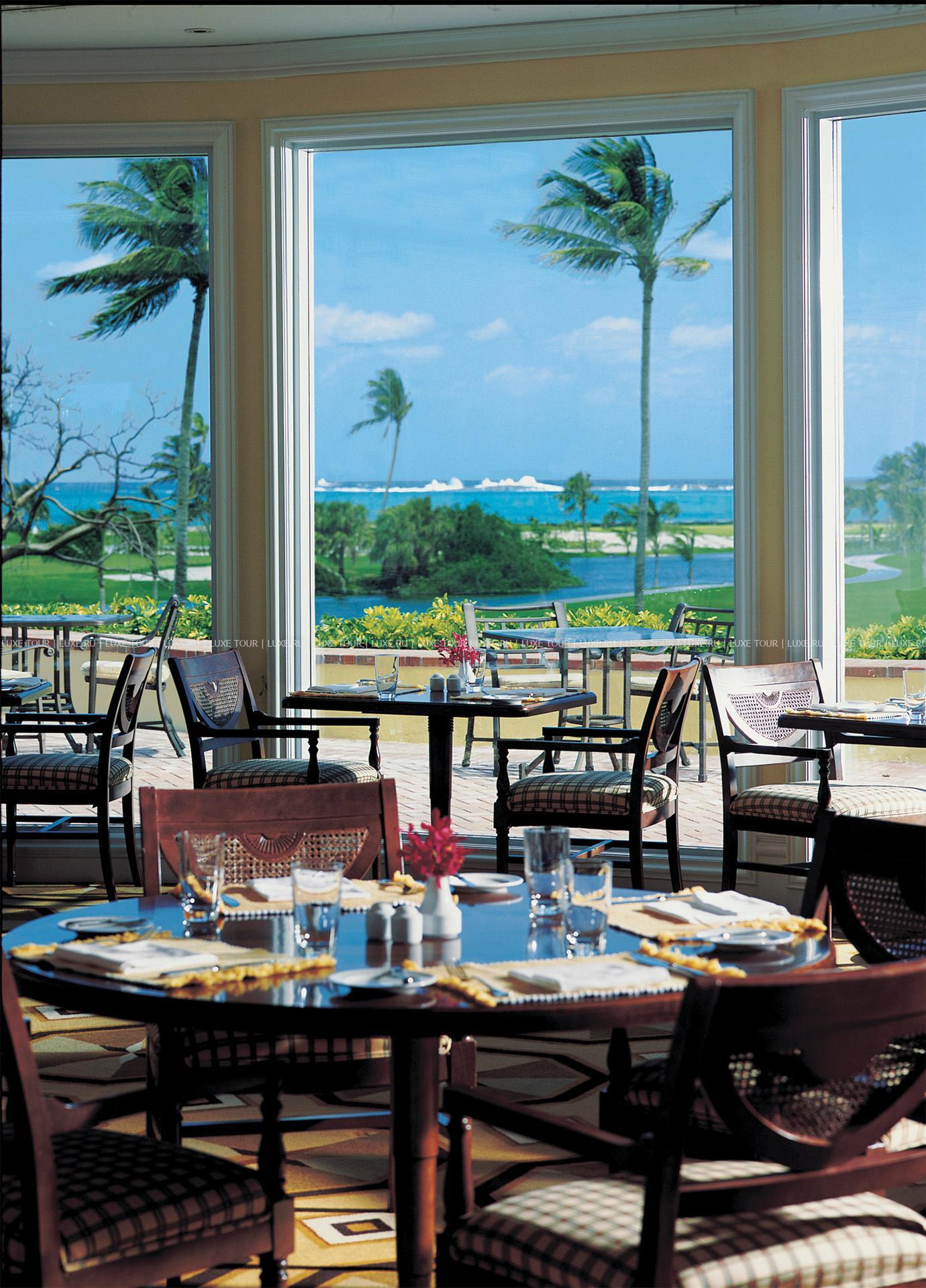 - Dune Bar — песок, вид на океан, знаменитые Багамские коктейли и меню из легких блюд. Вас ожидает атмосфера изысканной тропической элегантности, дополненная живыми развлечениями.