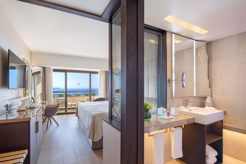 - 28 м2. Состоит из спальни с кроватью king-size или двумя кроватями twin, ванной комнаты с душем с эффектом хромотерапии, в некоторых номерах балкон с видом на море. Номера расположены в главном корпусе. Максимальное размещение – 2 взрослых + 1 ребенок.