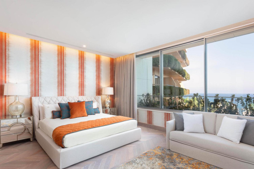 - 170 м2. Состоит из спальни с кроватью king-size, гостиной с обеденной зоной и кухней, гардеробной, ванной комнаты с душем, гостевой туалетной комнаты, балкона с зоной отдыха, обеденной зоной и панорамным видом на море. Номера расположены на 7 этаже в отдельном корпусе. Максимальное размещение – 2 взрослых + 1 ребенок.