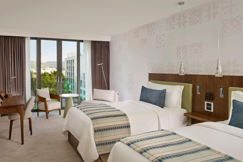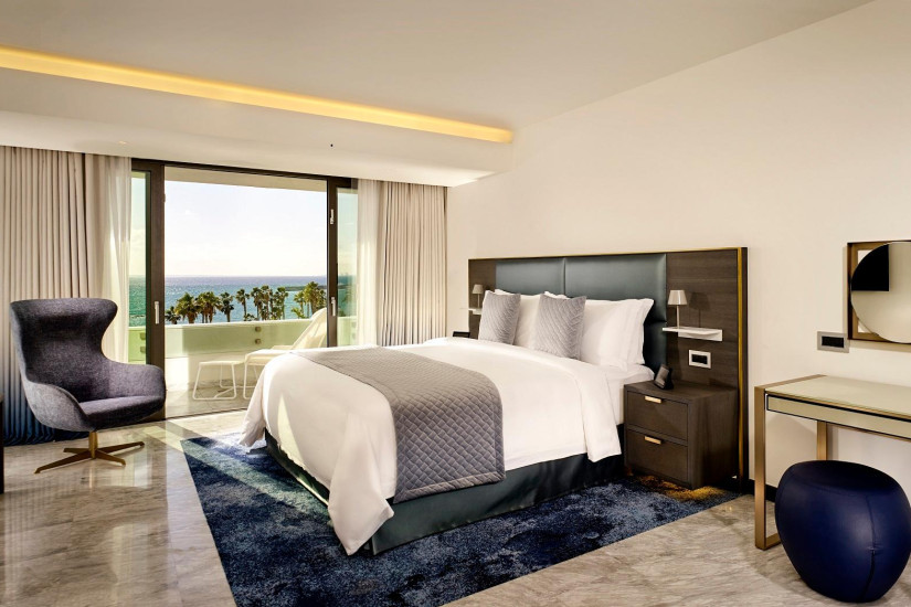 - 38-40 м2. Состоит из спальни с кроватью king-size или двумя кроватями twin, ванной комнаты, балкона с видом на море. Максимальное размещение – 2 человека.