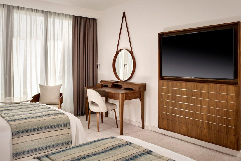 - 42 м2. Состоит из спальни с кроватью king-size или двумя кроватями twin, ванной комнаты, без балкона. Максимальное размещение – 2 взрослых + 2 ребенка или 3 взрослых, или 2 взрослых + 1 ребенок + 1 инфант.