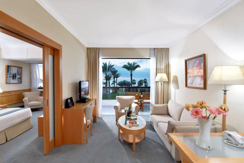 - 44 м2. Состоит из просторной спальни, гостиной комнаты с диваном, ванной комнаты, балкона с фронтальным или частичным видом на море, или на бассейн или частичным видом на море или видом на сады. Максимальное размещение — 2-3 человека.