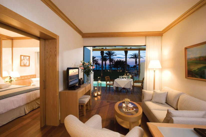 - Отель располагает номерами Suite различных категорий, включая Junior Suite, One Bedroom Suite, Superior One Bedroom Suite, Executive One Bedroom Suite with swimming pool. Просторные номера выполнены в элегантном современном стиле и декорированы с изысканным вкусом, великолепные ванные комнаты отделаны мрамором, а с больших балконов открывается изумительный вид на лазурное море и живописные сады.