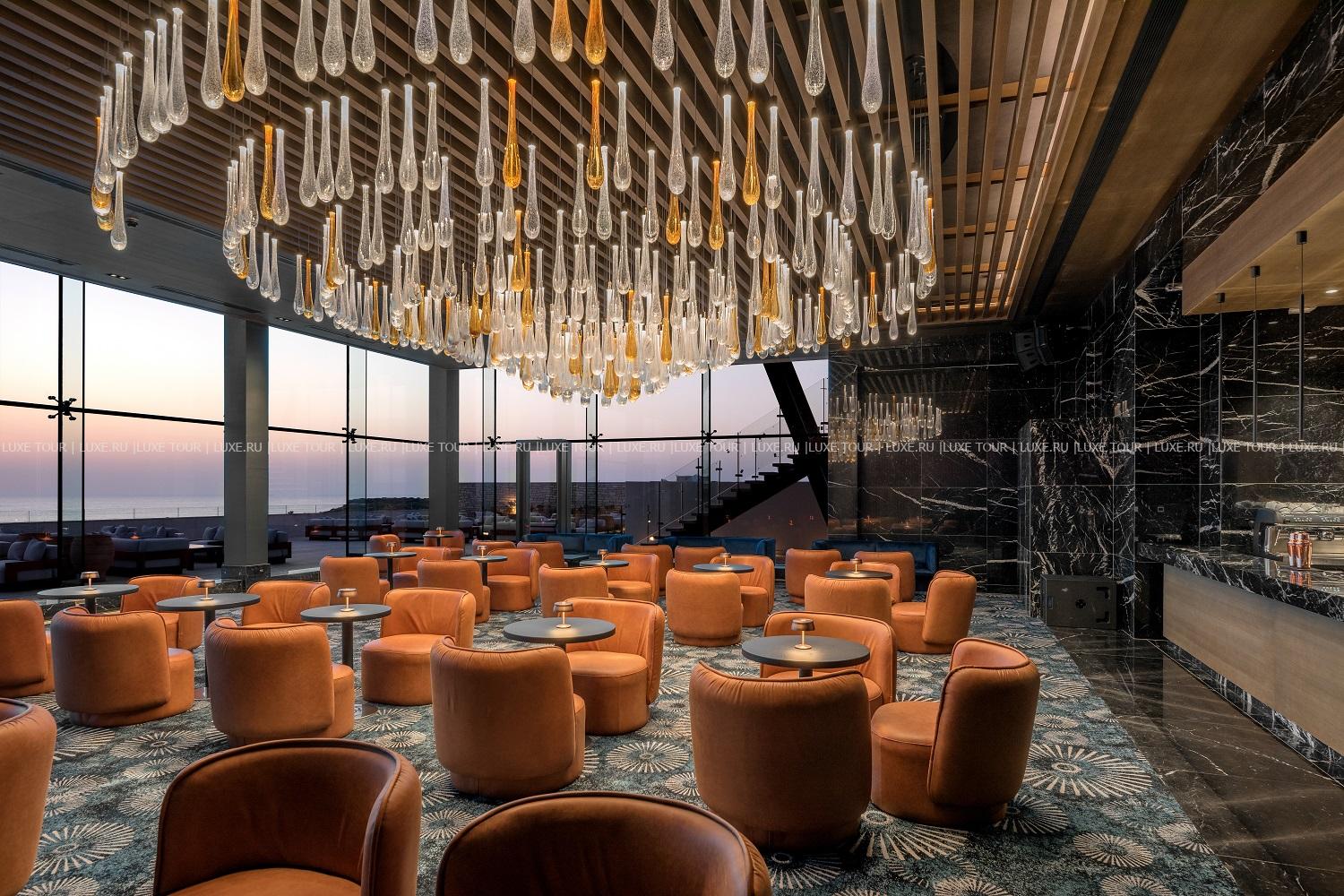 - Шикарный лаундж-бар Chroma с открытой террасой и панорамным видом на море предлагает широкий выбор напитков и изысканных закусок, включая суши, а также кальяны и живую музыку.