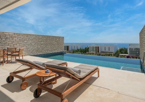 Cap St Georges Hotel & Resort раскинулся среди 5 гектаров живописных садов с кипарисами, оливковыми деревьями и лазурными бассейнами, у частного пляжа и сверкающего Средиземного моря. Здания курортного комплекса, построенные из местного камня, идеально вписаны в окружающий ландшафт, с террас элегантных номеров, шикарных вилл, изысканных ресторанов и баров открывается завораживающий вид на бирюзовое море, а высококлассные услуги отеля впечатляют разнообразием – от роскошного центра Cleopatra Spa и детского клуба до спорта и развлечений на любой вкус. Cap St Georges Hotel & Resortt предлагает эксклюзивный отдых в сказочном уголке Кипра.