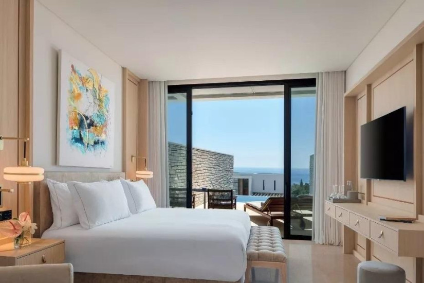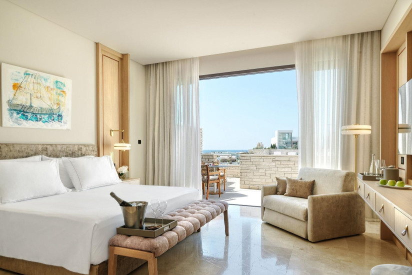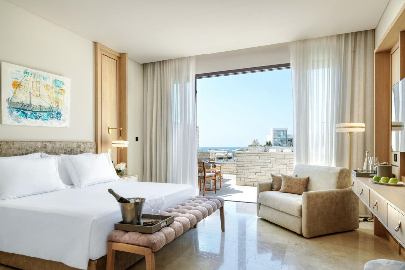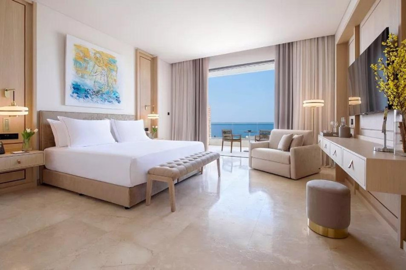 - В отеле 202 номера различных категорий, включая 163 Guest Rooms, 39 Suites и виллы с собственными бассейнами. Просторные номера декорированы в изысканном современном стиле, выдержаны в светлых тонах и оснащены первоклассными удобствами, а с балконов и террас открывается великолепный вид на живописные сады с бассейнами и сверкающее Средиземное море.
