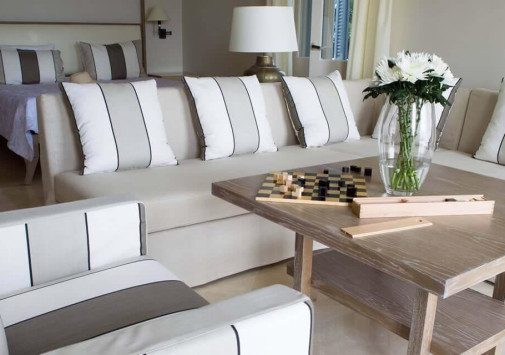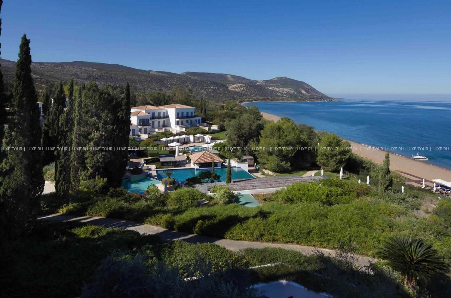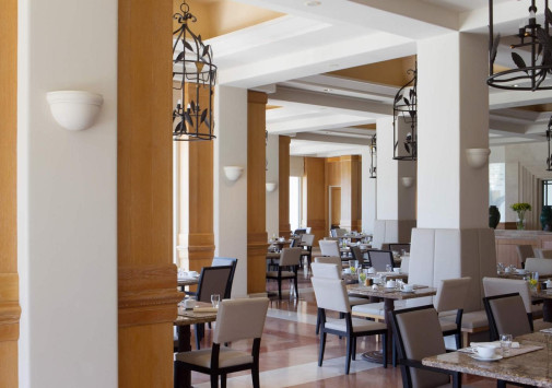- Amphora - неформальный ресторан курорта, предлагающий завтраки и тематические ужины «шведский стол». Гости могут выбирать блюда из большого ассортимента салатов, горячих и холодных закусок, основных блюд (некоторые из них готовятся у Вас на глазах) и изысканных десертов. Возможно обслуживание по меню á la carte и детскому меню. В летние месяцы гости, которые обедают на открытой террасе, могут наслаждаться захватывающими видами на Средиземное море и полуостров Акамас.