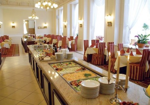 • К услугам гостей элегантный ресторан, где по утрам сервируют завтрак «шведский стол», а на обед и ужин предлагают разнообразное меню блюд чешской и интернациональной кухни. Также в ресторане готовят блюда на основе индивидуальной диеты гостей.