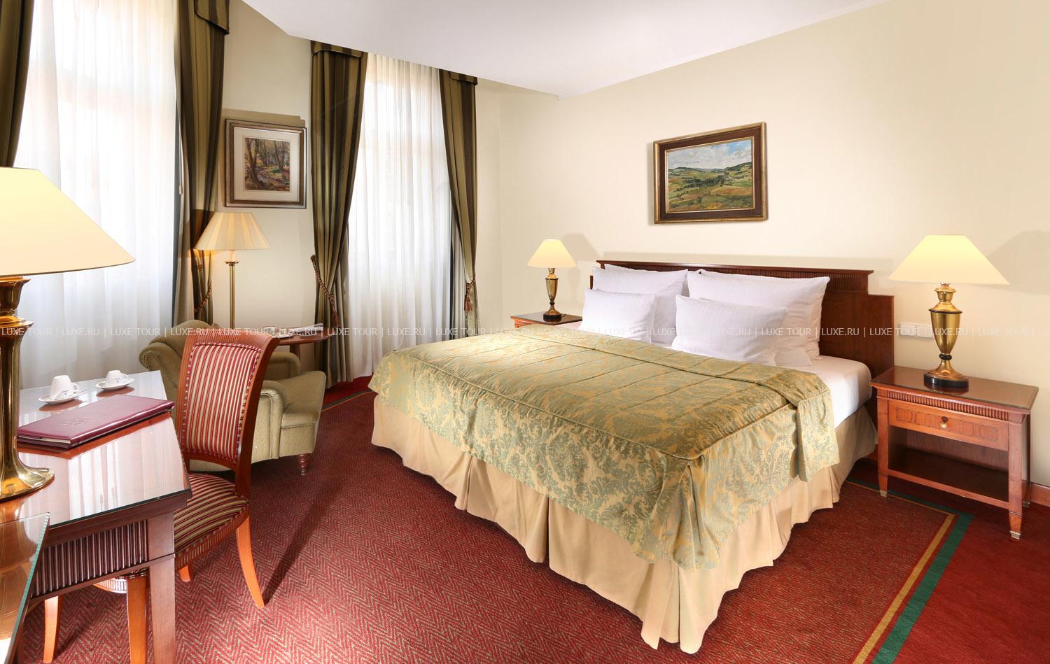 В самом сердце чешской столицы, на границе Старого и Нового городов возвышается великолепное здание Art Nouveau Palace Hotel Прага. История здание восходит к XIV веку, когда здесь находилась резиденция короля Вацлава IV, которая в 1776 году была передана принцу Кауницу, затем дворец принадлежал княжескому роду Ауэршпергов, а в ХIХ веке здесь размещалась редакция немецкой «Prager Tagblatt». В конце ХIХ столетия здание было снесено, и в 1909 году на его месте пражский строитель Франтишек Булдра и архитектор Георгий Юстих построили элегантный отель в стиле «сецессион». За годы истории в отеле побывали многие мировые знаменитости: Генри Киссиджер и Жискар д’Эстен, Давид Рокфеллер и Жаклин Кеннеди, Ален Делон и Джина Лоллобриджита, Милош Форман и Стивен Спилберг, Шер и Ума Турман, Роллинг Стоунс и Скорпионс. Список именитых гостей продолжает пополняться, а отель – поддерживать репутацию одного из самых престижных гостиниц Праги. Комфортабельные номера в элегантном стиле ар-нуво, изысканный ресторан Gourmet Club, входящий в 10 лучших международных пражских ресторанов, уютное кафе, вместительные банкетные залы и, конечно, высочайший уровень сервиса – все это ждет гостей Art Nouveau Palace Hotel Прага.