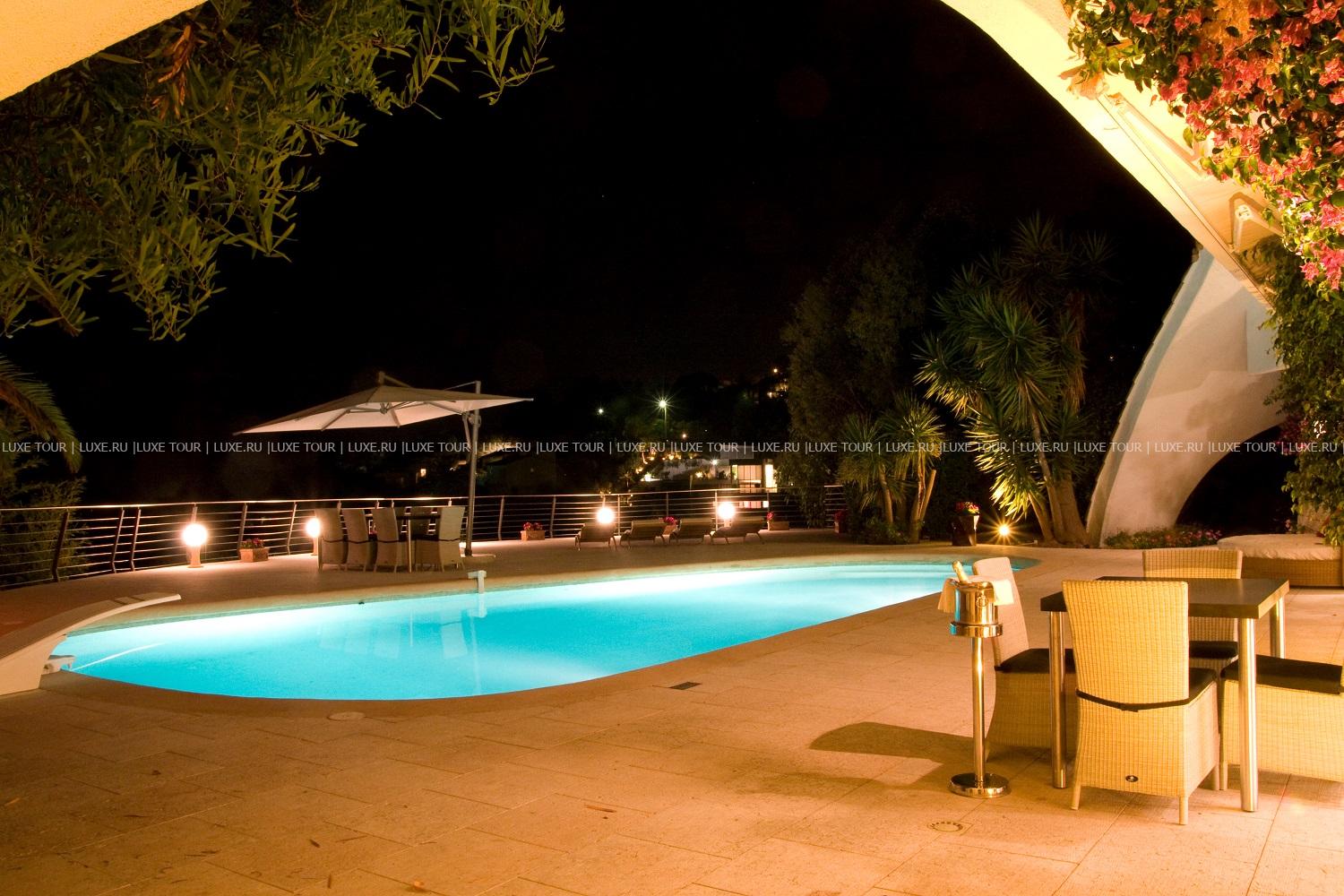 На вилле имеется открытый бассейн с вечерней подсветкой.