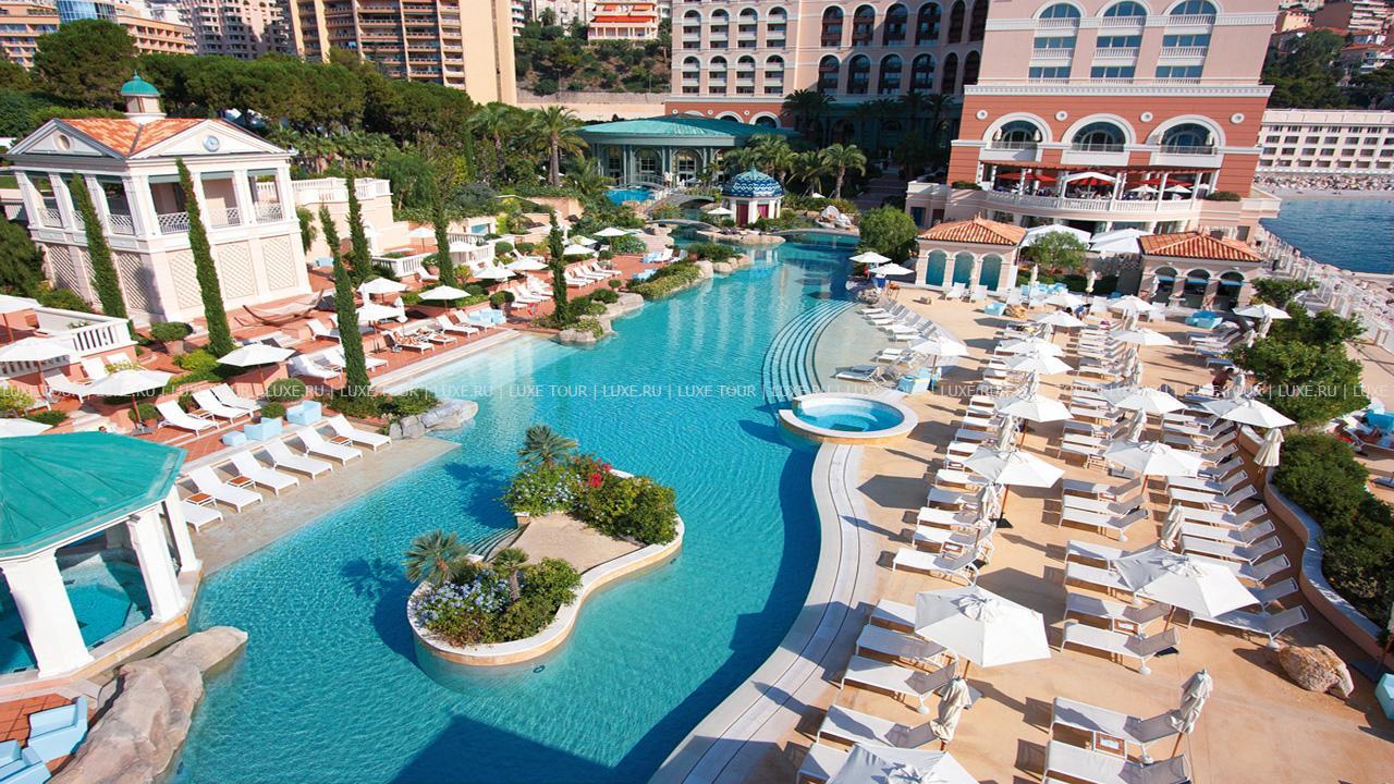 Курортная зона Ларвотто занимает 10 гектаров: в непосредственной близости от отеля расположены лучшие рестораны и казино Монте-Карло, клубы водных развлечений, танцевальные площадки, а также развлекательный клуб Monte-Carlo Sporting с концертной площадкой, на которой выступают известнейшие европейские исполнители. В комплекс гостиницы входят 3 ресторана и бар, открытый бассейн-лагуна, крытый бассейн, джакузи, а также спа-центр Cinq Mondes, предлагающий тренажерный зал, солярий, турецкие парные, комнаты отдыха, 12 массажных кабинетов и салон красоты.