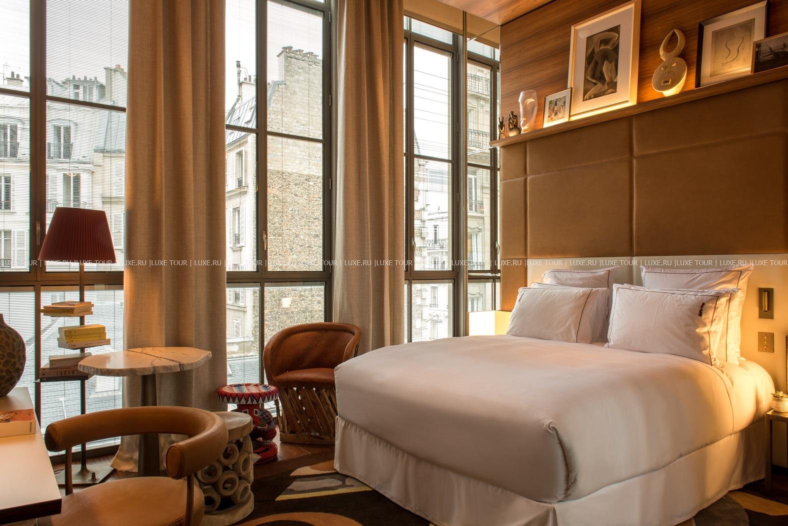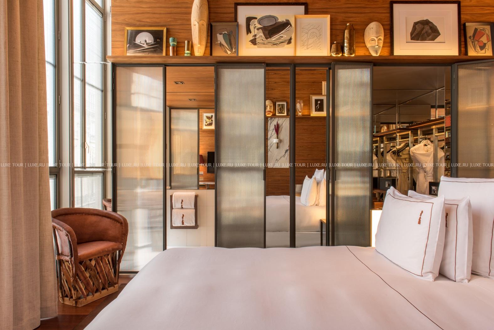 Brach Paris разместился в престижном 16-ом округе Парижа, в здании со сверкающим окнами фасадом, где в 1970-е годы находилась почтовая сортировочная станция площадью 7000 м2. Теперь здесь расположен элегантный отель, дизайн которого создал легендарный Филипп Старк, вдохновленный эстетикой 1930-х годов и эклектикой модернизма, сюрреализма и авангарда. Так, в стиле боксерских клубов той эпохи декорирован современно оснащенный фитнес-центр, комфортабельные номера отделаны натуральным деревом и обставлены мебелью тех времен, а интерьеры гастрономического ресторана, коктейль-бара и других помещений украшены оригинальными произведениями искусства и изящными инсталляциями. Помимо уникального дизайна отель предлагает гостям превосходную кухню, большой бассейн, разнообразие фитнес-программ, эксклюзивные спа-процедуры, а также террасу с садом на крыше, откуда открывается потрясающий вид на Париж и Эйфелеву башню. Brach Paris – идеальный выбор для ценителей искусства, стильного дизайна и безупречного сервиса.