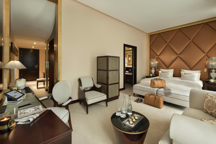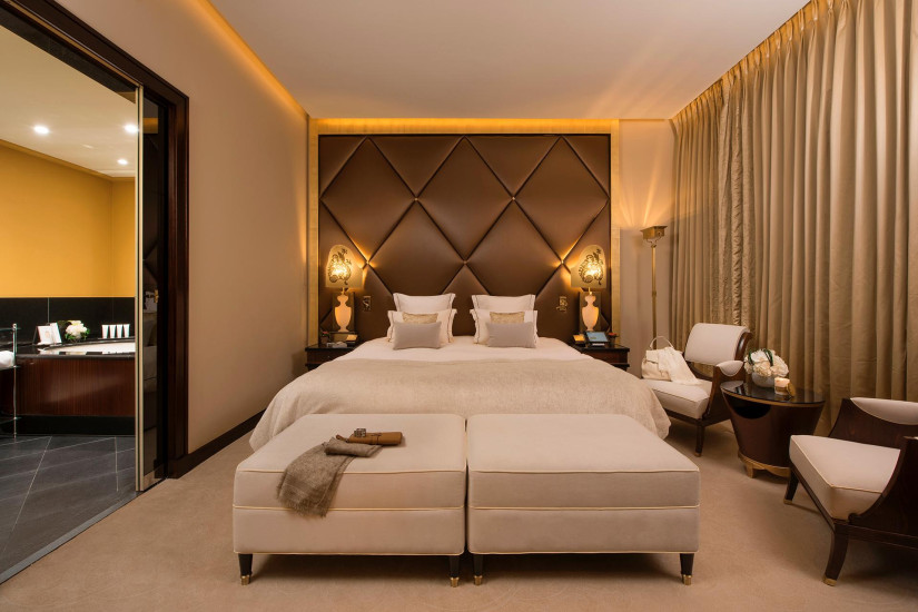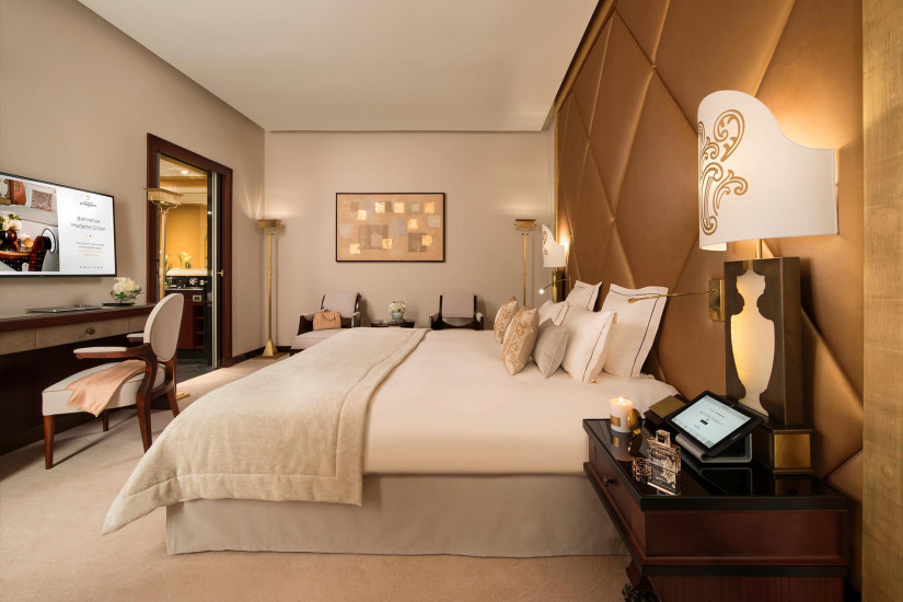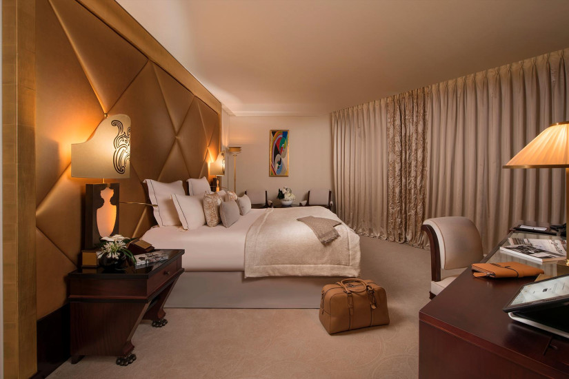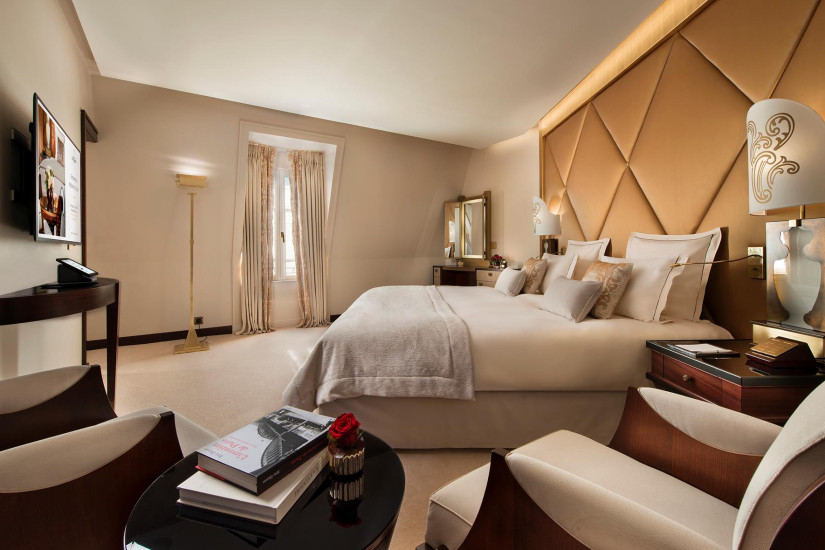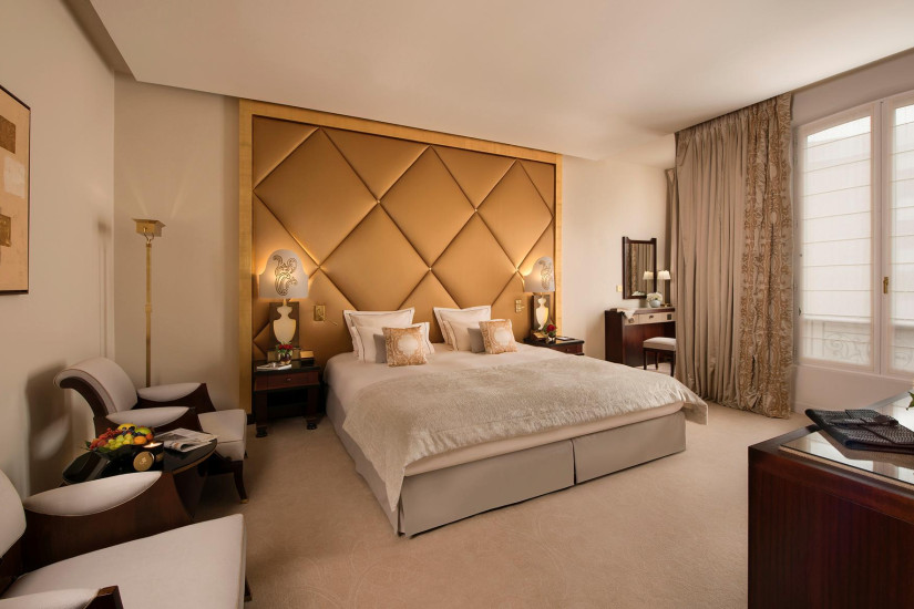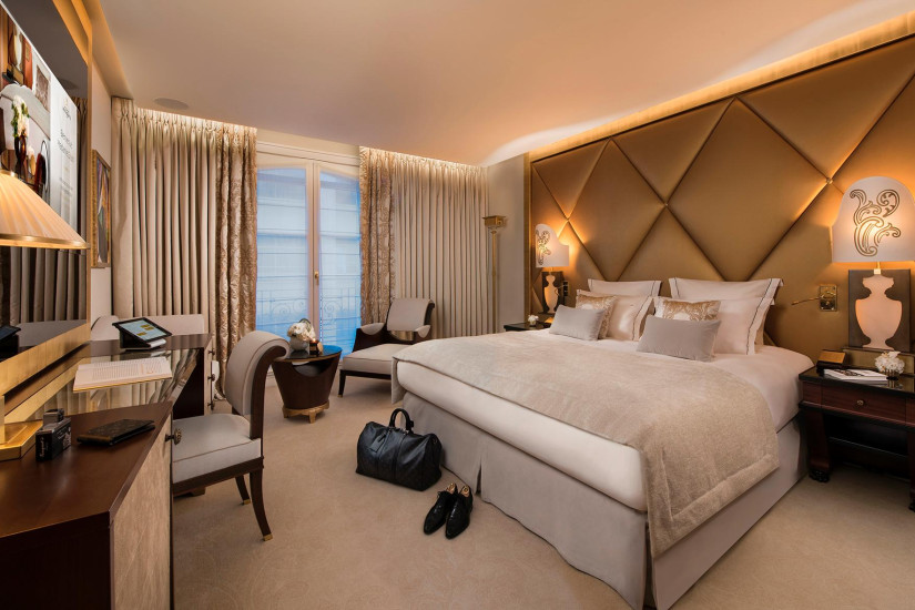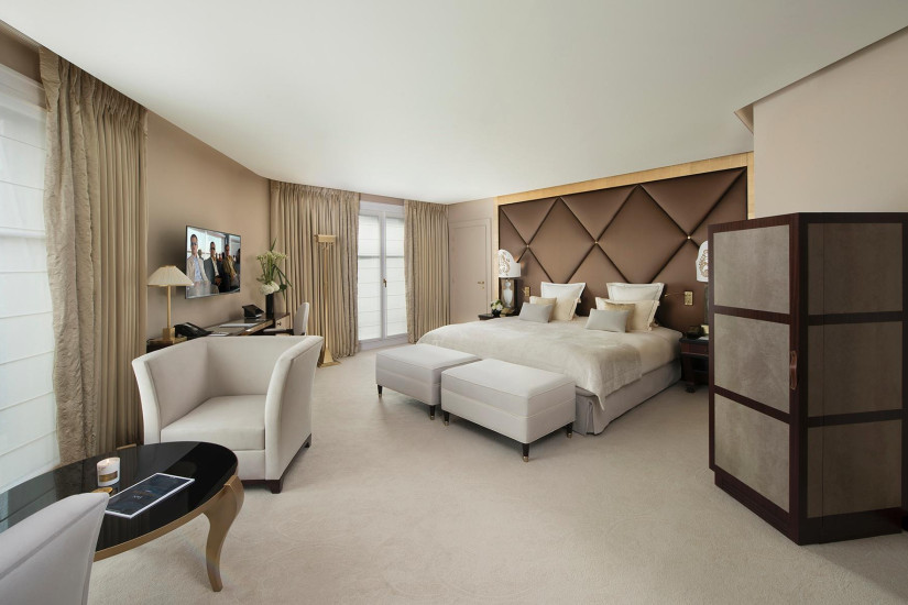 - 250 м2. Фешенебельный номер состоит из просторного холла, который может служить кабинетом или кухней для дворецкого, спальни площадью с ванной комнатой (с ванной, ливневым душем и хромотерапией) гардеробной, ведущей во вторую спальню с ванной комнатой. Обе спальни имеют вид на Елисейские Поля. Также номер включает просторную гостиную с рабочей зоной и балкон с видом на сад и Эйфелеву башню.