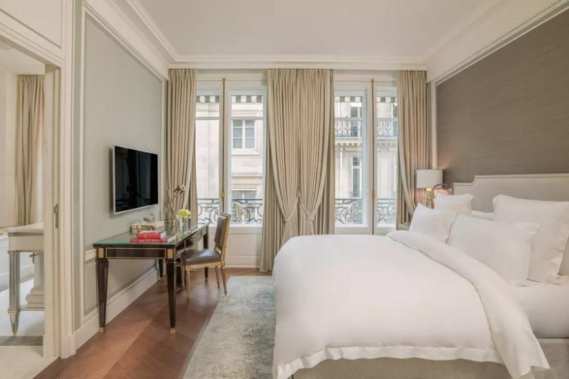 - В отеле номера различных категорий. Комфортабельные номера сочетают элегантный современный дизайн и элементы декора дворца XVIII века, а из окон открывается великолепный вид на площадь Согласия и исторический центр Парижа.
