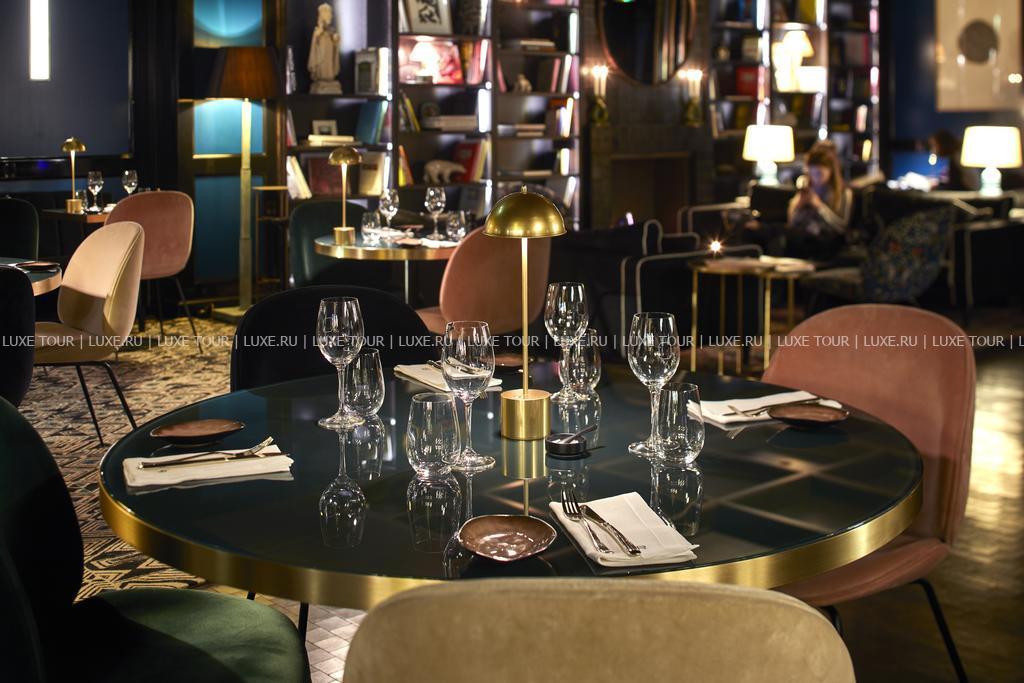 В элегантном ресторане отеля можно отведать изысканные французские блюда от известного шеф-повара Арно Файе. В уютном баре предлагается широкий выбор коктейлей, вин, аперитивов и легких закусок. Предлагается обслуживание в номерах.
