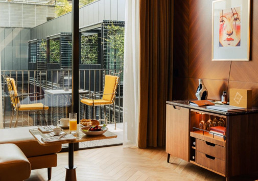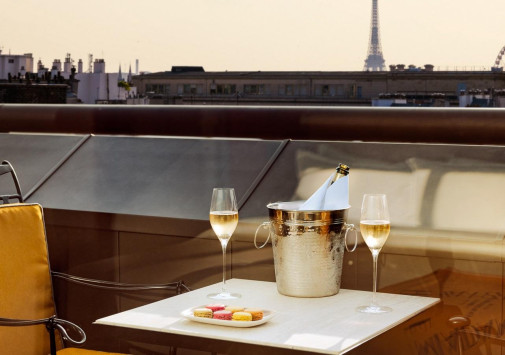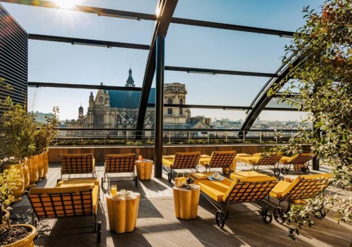 • На террасе с чудесным садом, расположенной на крыше отеля, находится бар Roof, где можно отдохнуть за коктейлем, любуясь потрясающим видом на Эйфелеву башню, Нотр-Дам, церковь Сент-Эсташ и парижские пейзажи.