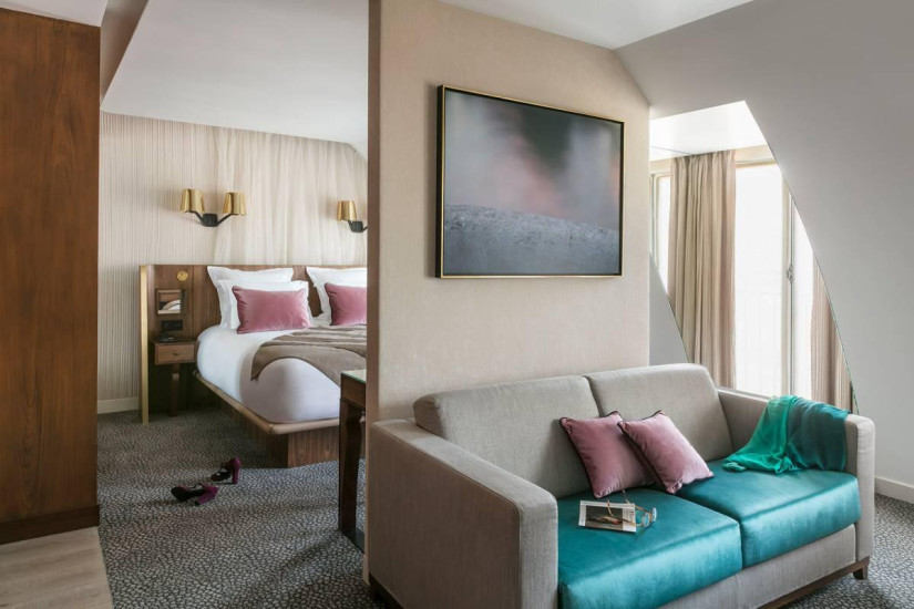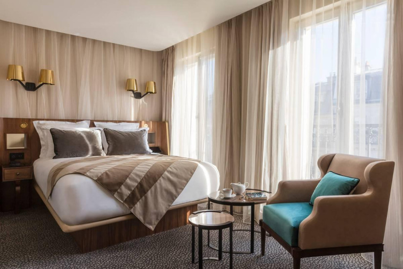 - В отеле 60 номеров различных категорий, включая Guest Room и Suite. Номера декорированы в элегантном стиле ар-деко, отделаны деревом и изысканным текстилем, а из окон открывается прекрасный вид на Париж.