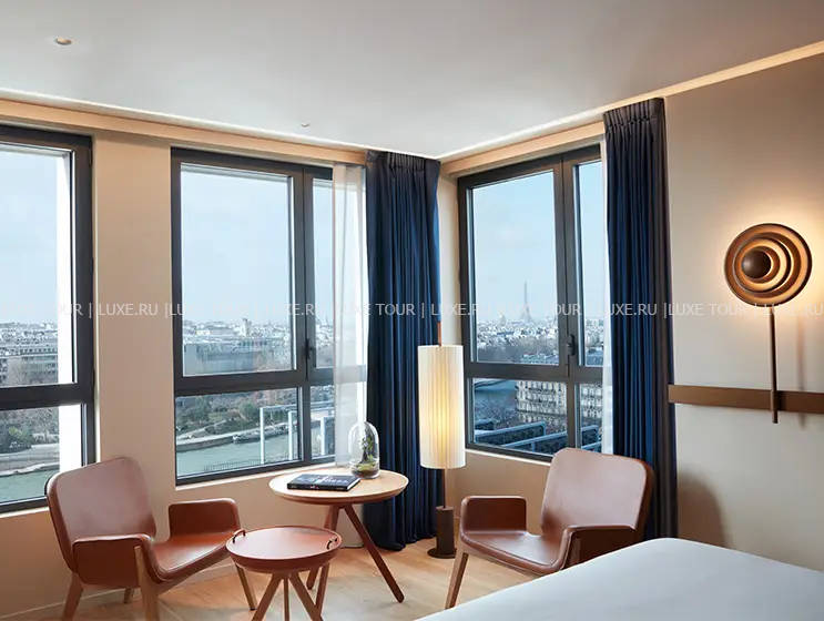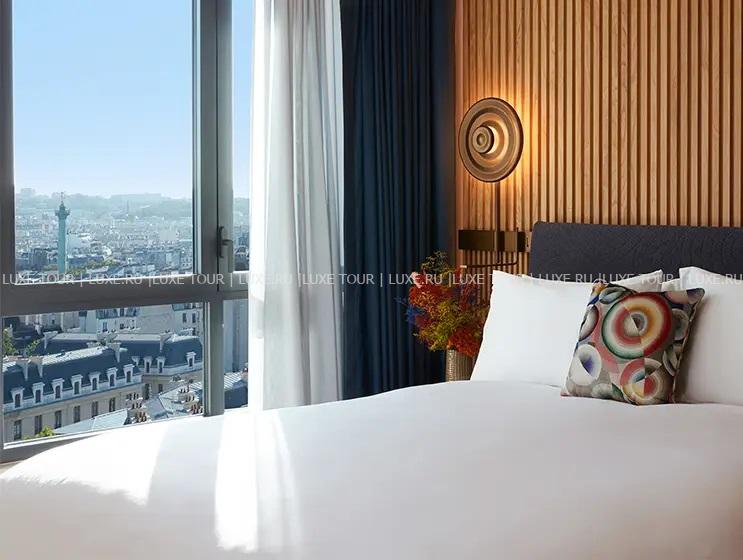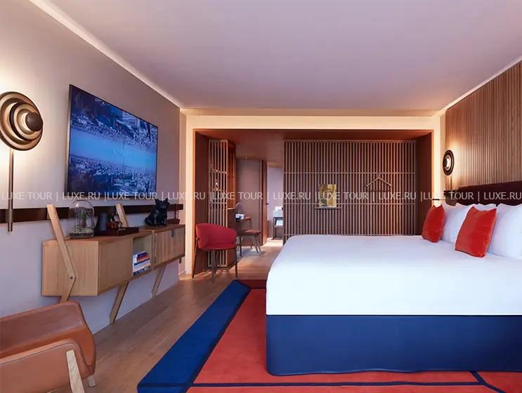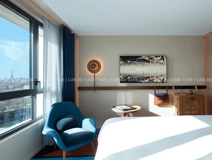 SO Paris Hotel находится на берегу Сены в самом сердце Парижа, рядом с собором Нотр-Дам и ультрамодным кварталом Маре. Стильный отель вполне соответствует своему престижному местоположению – основу его концепции составляет квинтэссенция парижской моды, искусства и авангардного дизайна. Даже униформа сотрудников отеля была создана известным дизайнером Гийомом Анри. Произведения современного искусства украшают все помещения – от холла, напоминающего художественную галерею, до элегантных номеров с панорамным видом на Сену, Эйфелеву башню, собор Сакре-Кер и другие знаковые достопримечательности французской столицы. Кроме того, к услугам гостей Spa-салон, фитнес-центр с бассейном, современно оснащенные конференц-залы, а также гастрономический ресторан, бар и ночной клуб, разместившиеся под зеркальным потолком на двух верхних этажах здания, откуда открывается фантастический вид на Париж. SO Paris Hotel – прекрасный выбор для ценителей искусства и знакомства с модными трендами парижской культуры.