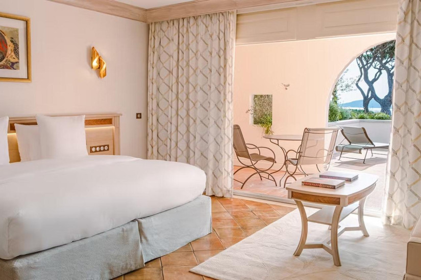 - 45 м2. Состоит из спальни с кроватью king-size и гостиной зоной с диваном, ванной комнаты с гидромассажной ванной и душем, в некоторых номерах просторная терраса с зоной отдыха и панорамным видом на залив Сен-Тропе и закат. Номера расположены на первом или верхнем этаже здания Le Belvédère. Максимальное размещение – 2 человека.