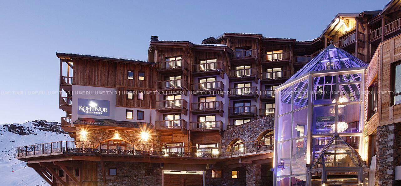Над высокогорным курортом Валь-Торанс возвышается Koh-I Nor Val Thorens – шикарный отель, впечатляющий ультрасовременной архитектурой и дизайном. Название отеля отражает его необычную концепцию: Koh-I Nor – легендарный алмаз «Кохинур» в 105,6 карат, украшающий корону английской королевы, в переводе с персидского означает «Гора света». Так же, как знаменитый алмаз, отель буквально пронизан светом, который проникает через огромные стеклянные окна всех помещений, а в сам отель гости попадают через стеклянную башню, построенную в виде алмаза. С балконов роскошных номеров открывается потрясающий вид на Три долины. Koh-I Nor Val Thorens располагает и другими удобствами класса «люкс»: ресторанами, в которых можно отведать блюда от шеф-повара – обладателя одной «мишленовской» звезды, солнечная панорамная терраса, элегантный лундж-бар, великолепный Спа-центр с 2 бассейнами, фитнес-залом и разнообразием эксклюзивных процедур, и многое другое.
