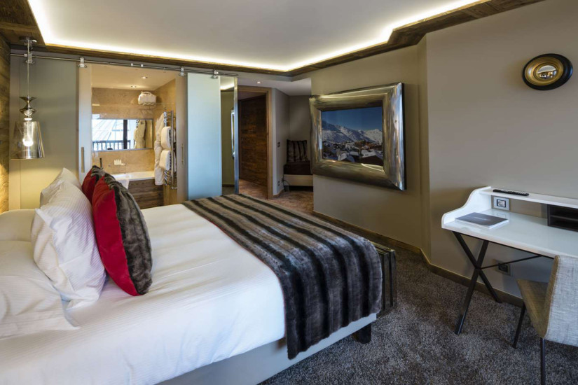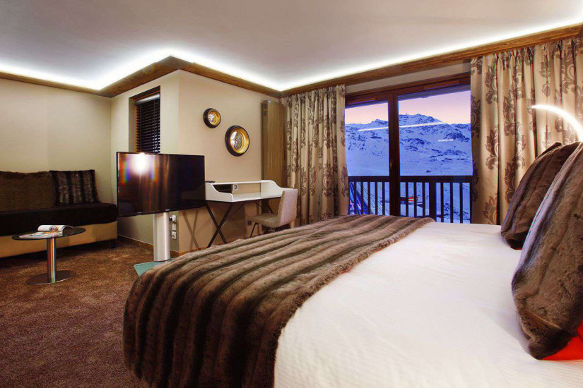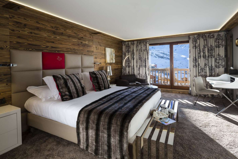 - В отеле 63 номера различных категорий, включая Rooms и Suites, также в отеле имеются номера категории Family Rooms. Просторные светлые номера оснащены по последнему слову техники, сочетают стильный современный дизайн и альпийский уют, отделаны натуральным деревом и мрамором, и декорированы мехом и изысканными тканями. С балконов и из панорамных окон номеров открывается изумительный вид на Три долины и Валь-Торанс.