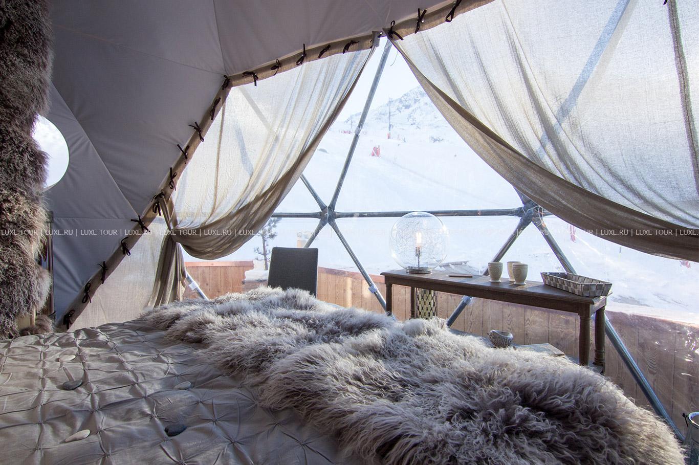 Pashmina Le Refuge Валь-Торанс, окруженный величественными горными вершинами, находится в самом сердце Трех Долин, на высоте 2300 м над уровнем моря Концепция этого фешенебельного отеля полностью отражена в его названии: «пашмина» – самая теплая, мягкая и нежная шерстяная ткань в мире символизирует теплоту домашнего уюта, а слово «refuge» переводится с французского как «высокогорный приют, укрытие». Pashmina Le Refuge Валь-Торанс – это действительно уютный, но роскошный уголок под самым небом. Гостей ждут элегантные и комфортабельные номера с балконами и чудесным видом на горы, просторные апартаменты-шале и даже настоящая хижина-иглу на крыше отеля. В ресторанах можно насладиться изысканной французской и савойской кухней, в баре отдохнуть за бокалом вина, любуясь захватывающей панорамой Альп, а после дня, проведенного на лыжных трассах, расслабиться и восстановить силы в одном из самых высокогорных СПА-центров Европы.