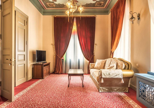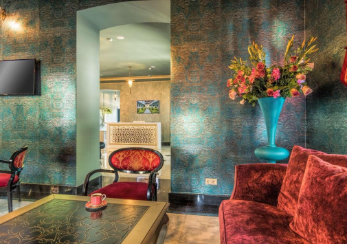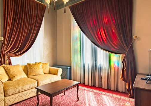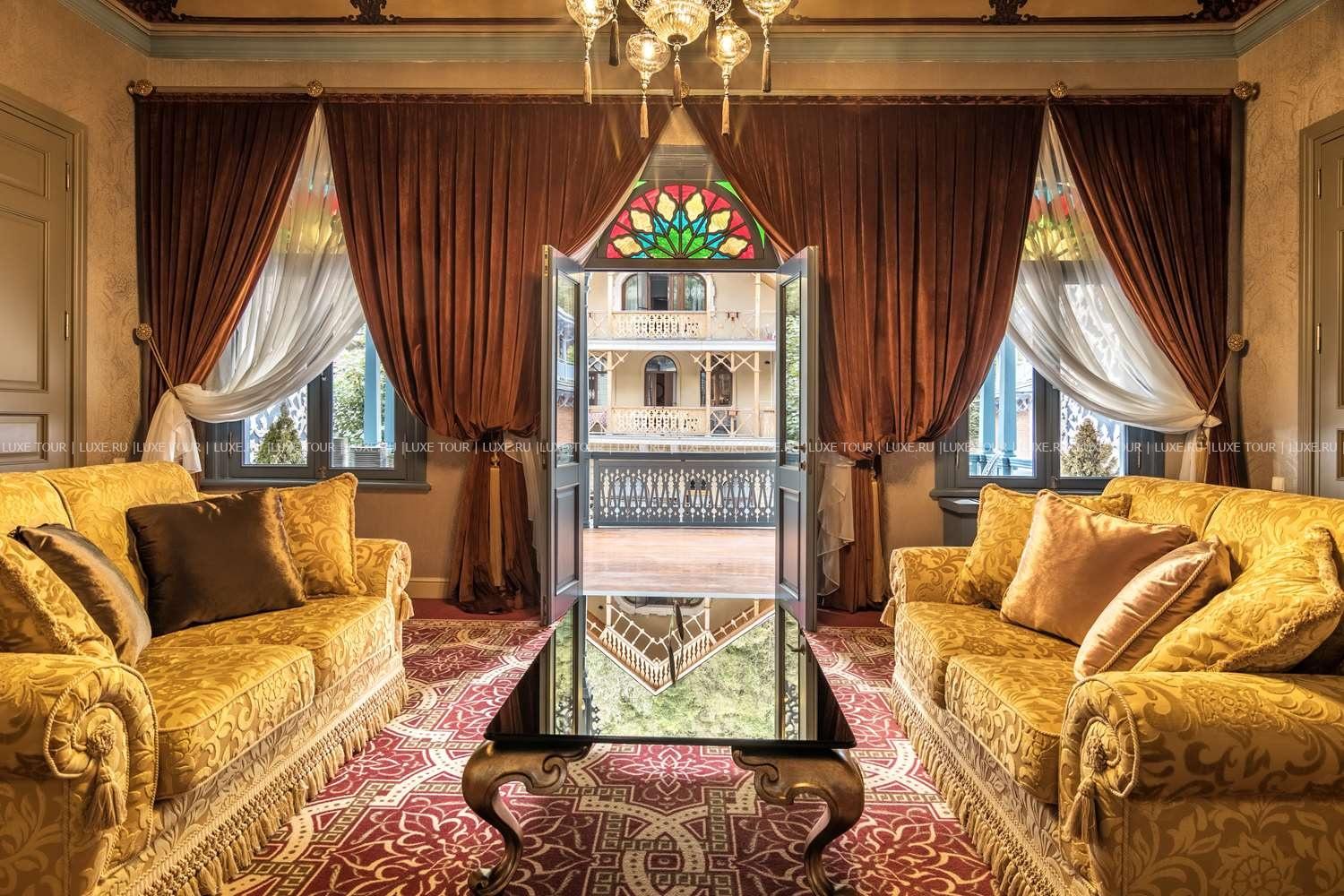 В окружении поросших лесами гор, рядом со старинным Центральным парком Боржоми находится Golden Tulip Borjomi, занимающий исторический памятник XIX века – бывший дом иранского консула Мирза-Риза-хана. В 1892 году он построил здесь особняк «Фируза» – «Бирюза» в переводе с персидского: верхняя часть его фасада украшена ажурной деревянной резьбой голубого цвета, а потолок балкона инкрустирован бирюзовыми камнями. Интерьеры здания воссоздают обстановку аристократической резиденции: сверкание мрамора и люстр, сложные восточные орнаменты, украшающие стены и потолки всех помещений, великолепные бархатные и набивные ткани, изящная мебель и изысканные произведения искусства. При этом, гостям бутик-отеля предлагается весь спектр современных услуг – от комфортабельных номеров, Spa-центра и тренажерного зала до превосходных национальных блюд в элегантных ресторанах и богатой карты грузинских вин в баре. Golden Tulip Borjomi – очаровательный отель и историко-архитектурная достопримечательность Боржоми.