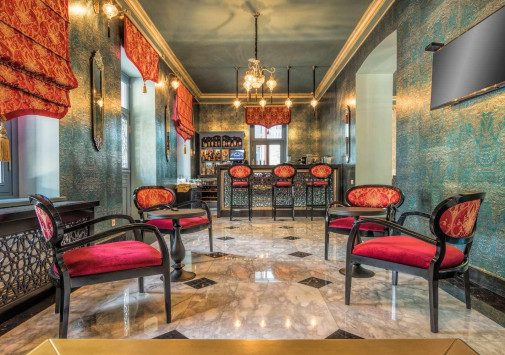 - Изысканный ресторан Arfaye с историческим интерьером, украшенным ажурными орнаментами и цветными витражами, представляет международную и национальную кухню.