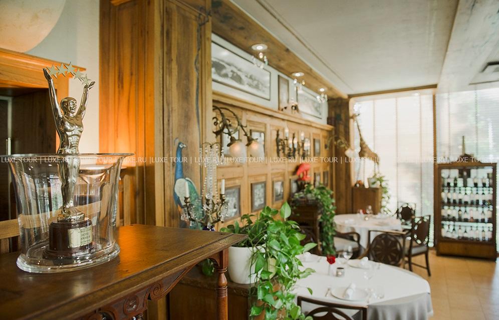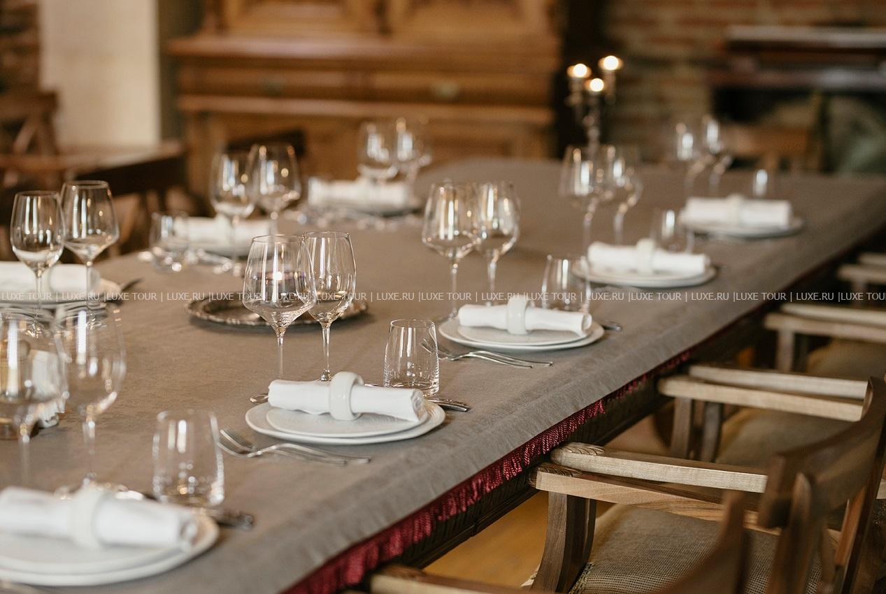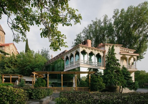 - Ресторан отеля, предлагающий традиционные грузинские блюда и лучшие вина из собственного винного погреба, включает основной зал с аутентичными интерьерами и живой музыкой, небольшой традиционный зал, расположенный в историческом погребе с каменными сводами, и очаровательную террасу с садом, фонтанами и видом на старинную церковь.