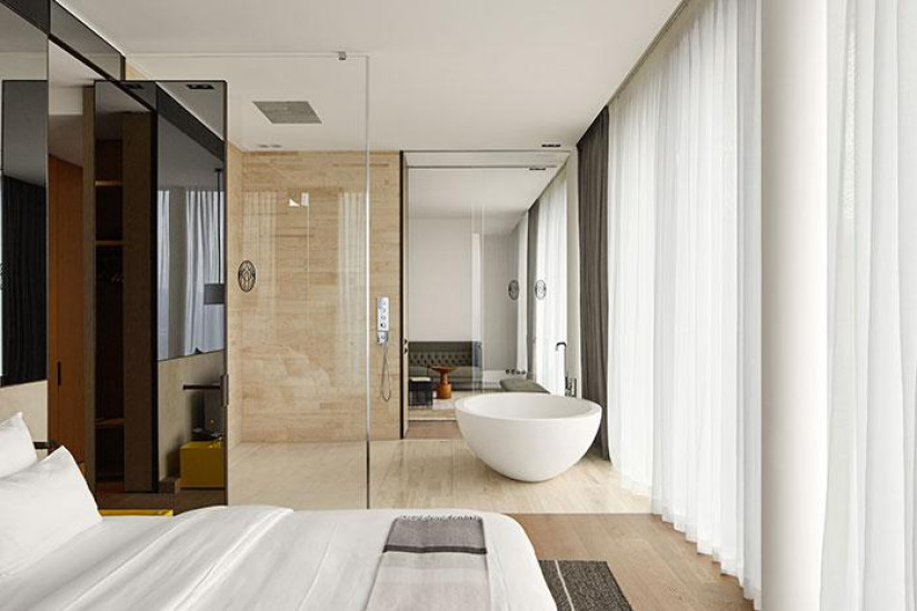 - 55 м2. Состоит из спальни с кроватью king-size и гостиной зоны с диваном (или спальни с установленной в ней ванной), ванной комнаты с ванной и/или ливневым душем.