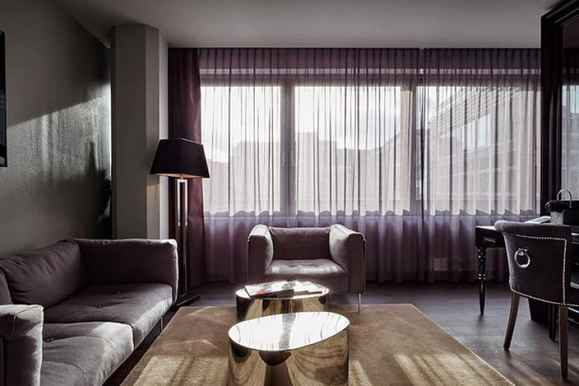 - В отеле 116 номеров различных категорий, включая Guest Room и Suite. Номера декорированы с изысканным шиком, сочетающим современный дизайн и классический стиль: отделка из темного натурального камня и роскошного бархатного текстиля, мерцающая сталь и оригинальные светильники Zumtobel с приглушенным освещением. Из окон номеров открывается прекрасный вид на Франкфурт и тихое патио отеля.