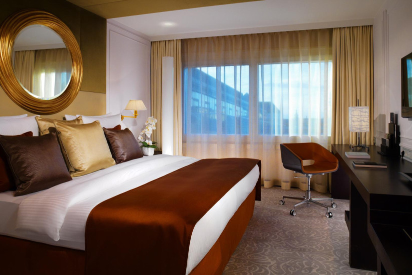 - 50-64 м2. Элегантный номер, сочетающий современный дизайн и изысканную классику, состоит из спальни с кроватью king-size или двумя кроватями twin, отдельной гостиной с рабочей зоной, просторной ванной комнаты с ванной или душем. Вид на улицу. Номера располагаются в историческом крыле здания. Максимальное размещение - 3 человека.