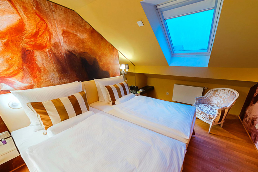 - 25 м2. Состоит из спальни с кроватью king-size или двумя кроватями twin, рабочей зоны, ванной комнаты с ванной или душем. Вид на улицу или во внутренний двор отеля. Максимальное размещение - 2 взрослых. Возможно объединение номеров