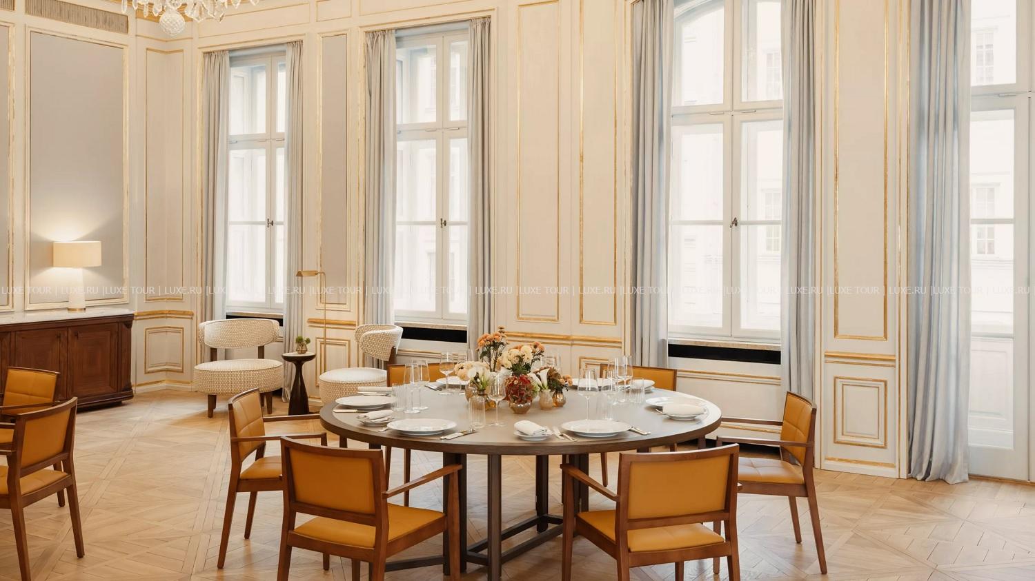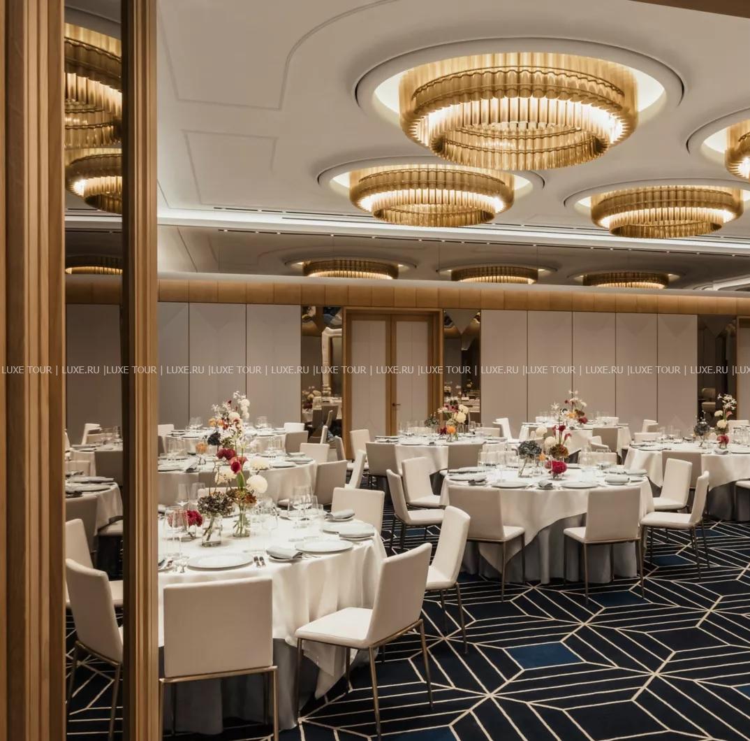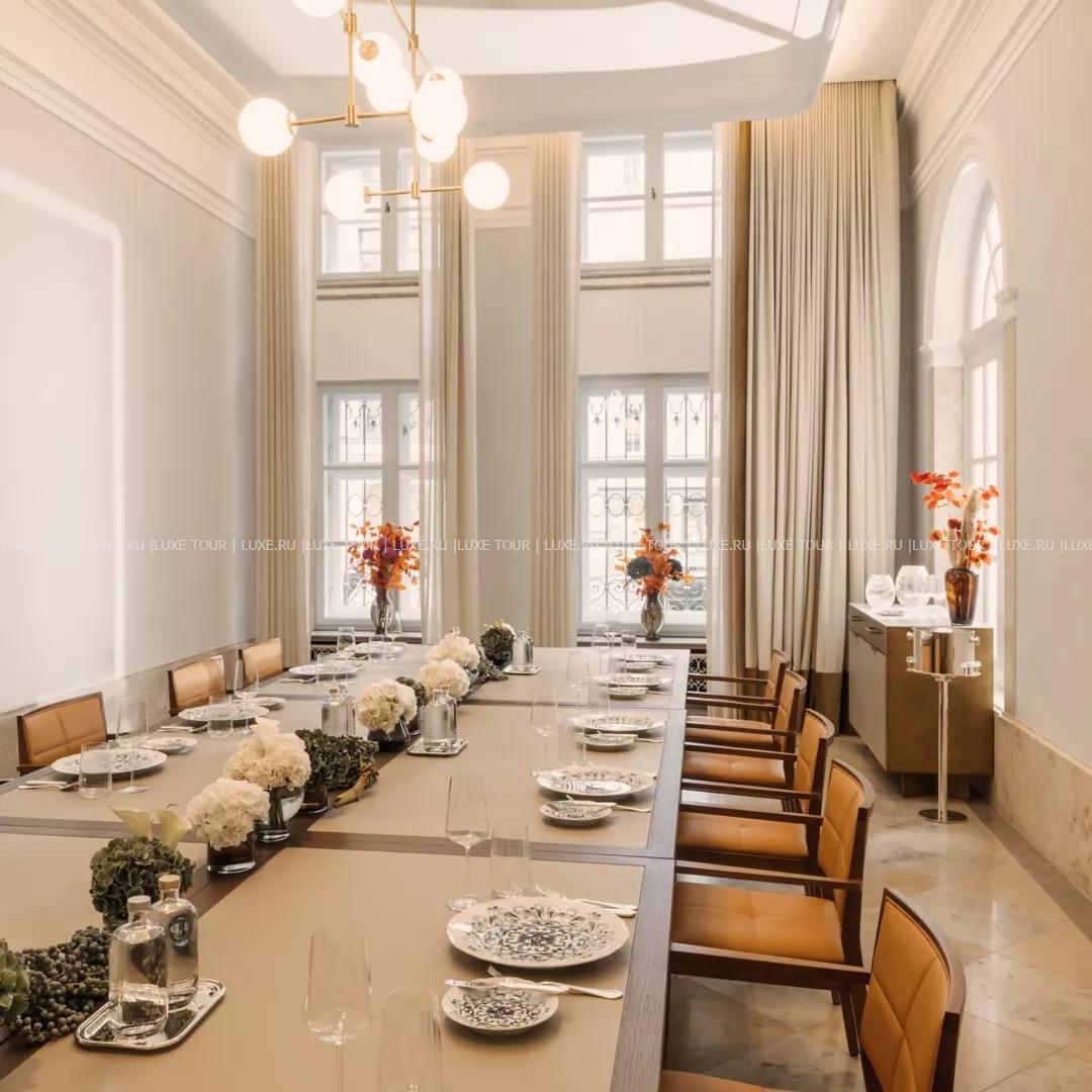 Для гостей – 6 залов для деловых и торжественных мероприятий общей площадью 600 м2, включая зал Ballsaal вместимостью до 200 человек, бизнес-сервис, бесплатный Wi-Fi, парикмахерский салон, лимузин-сервис, услуги дворецкого, услуги консьержа, услуги прачечной.
